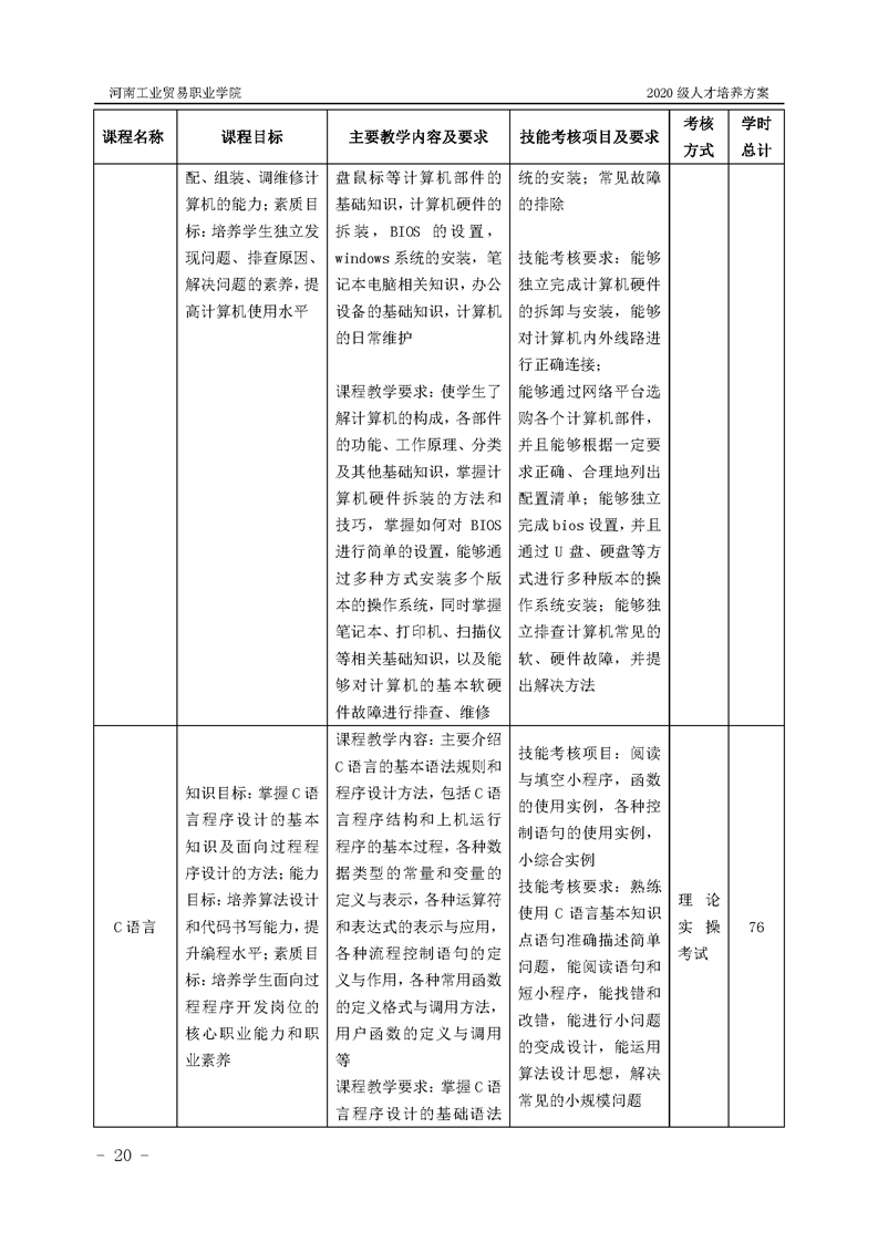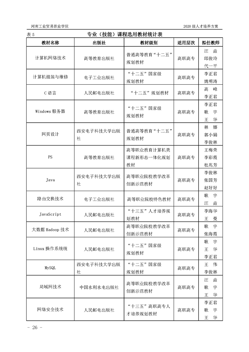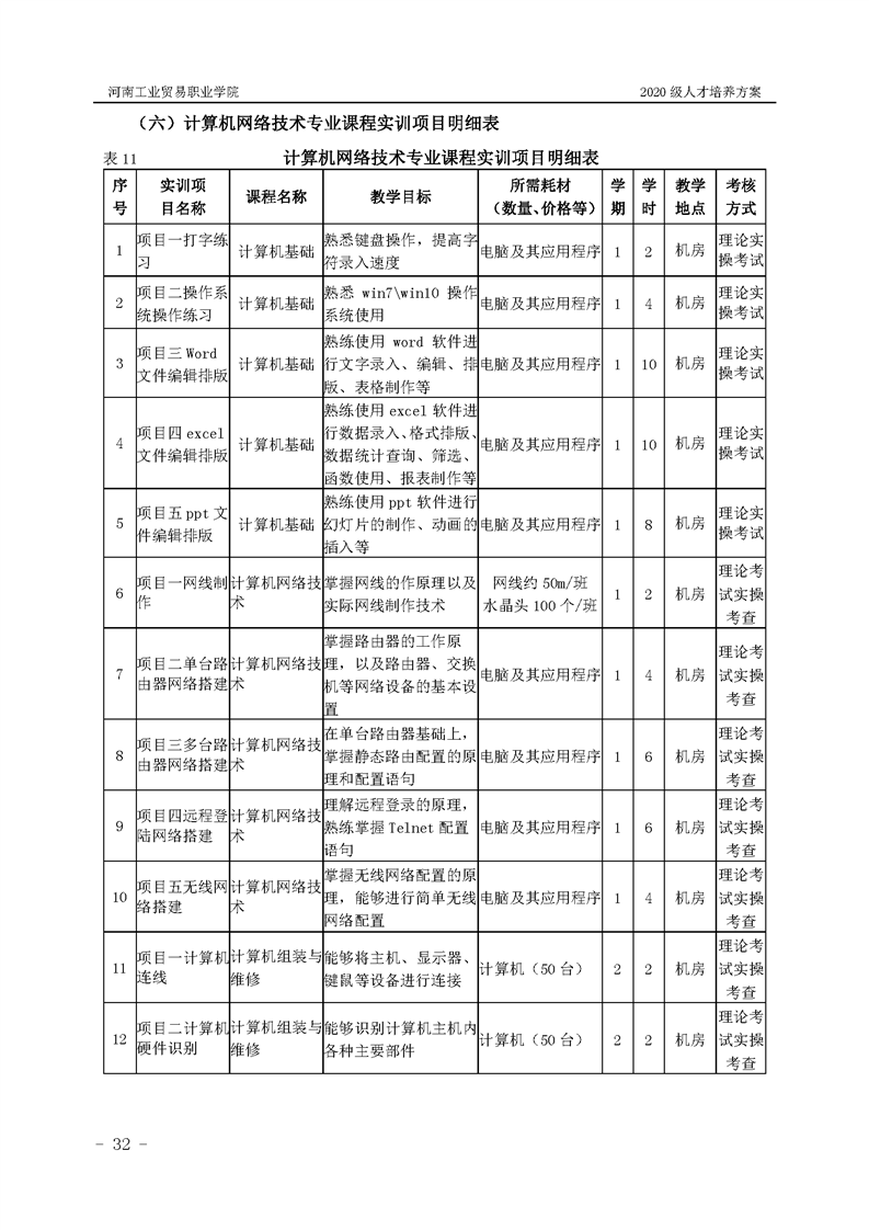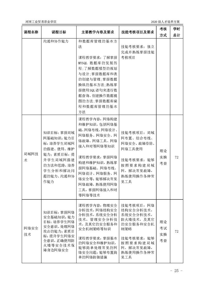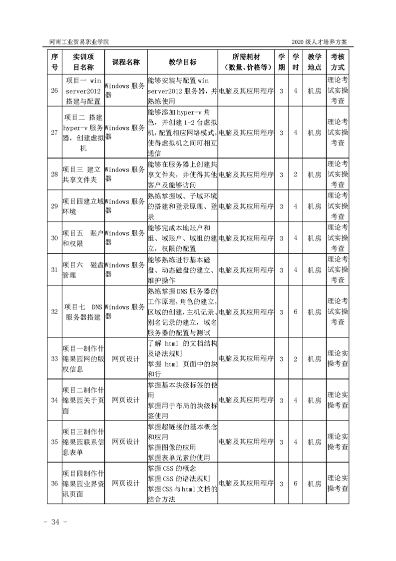 18.2020級計算機網絡技術專業(3年制)人才培養方案