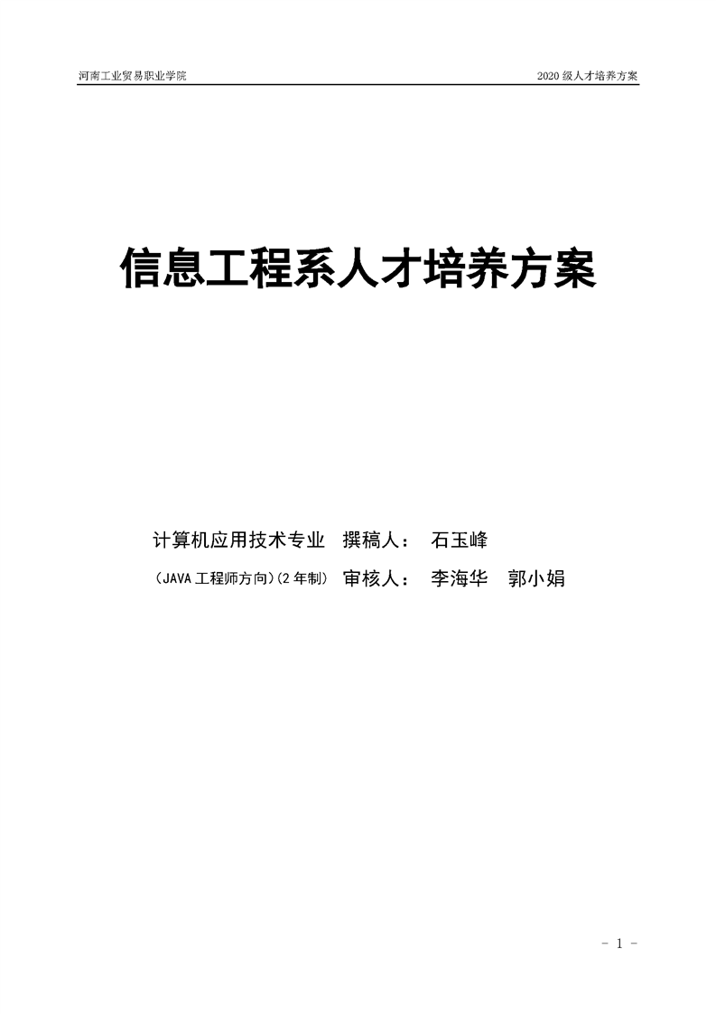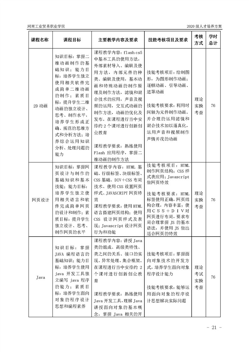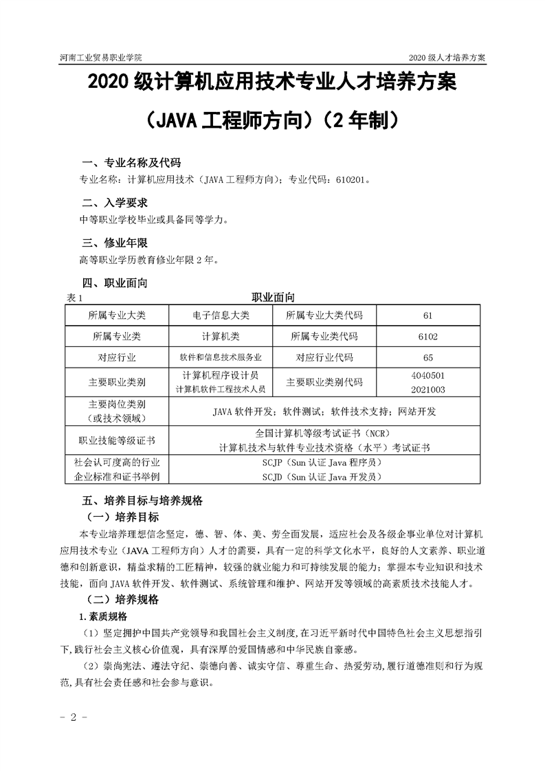 21.2020級計算機應用技術專業(JAVA工程師方向)(2年制)人才培養方案