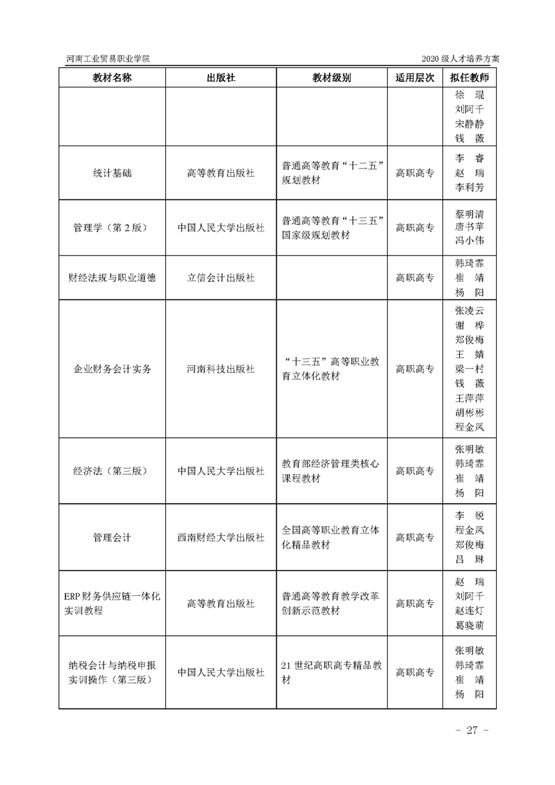 27.2020級會計專業(管理會計方向)(3年制)人才培養方案