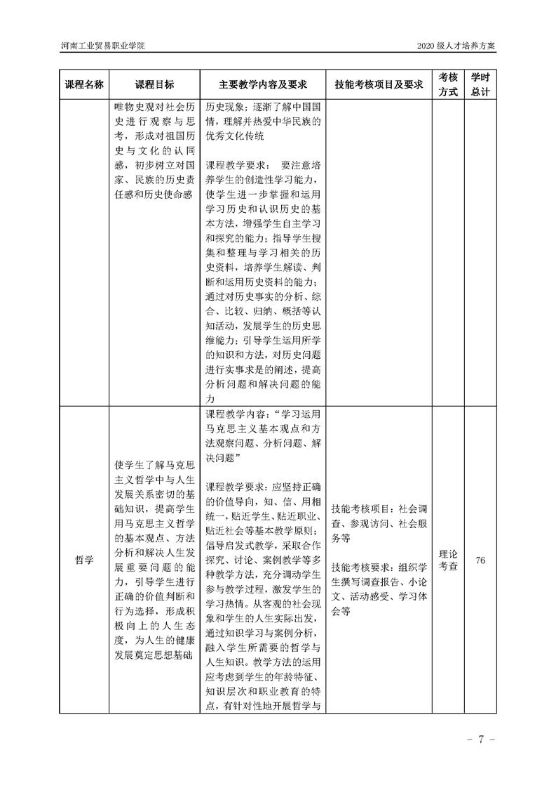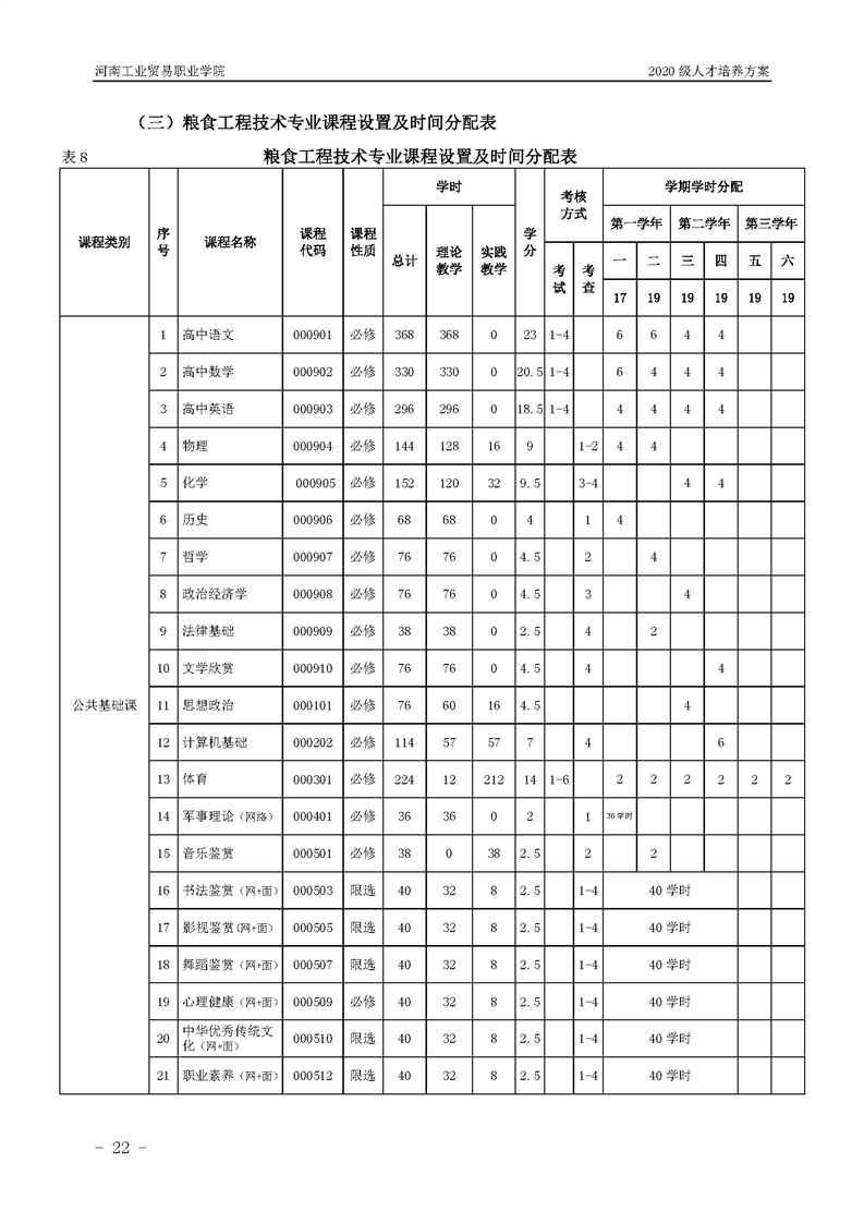 7.2020級(jí)糧食工程技術(shù)專業(yè)(五年一貫制前3年)人才培養(yǎng)方案