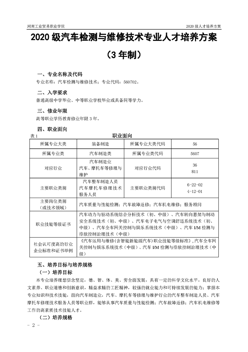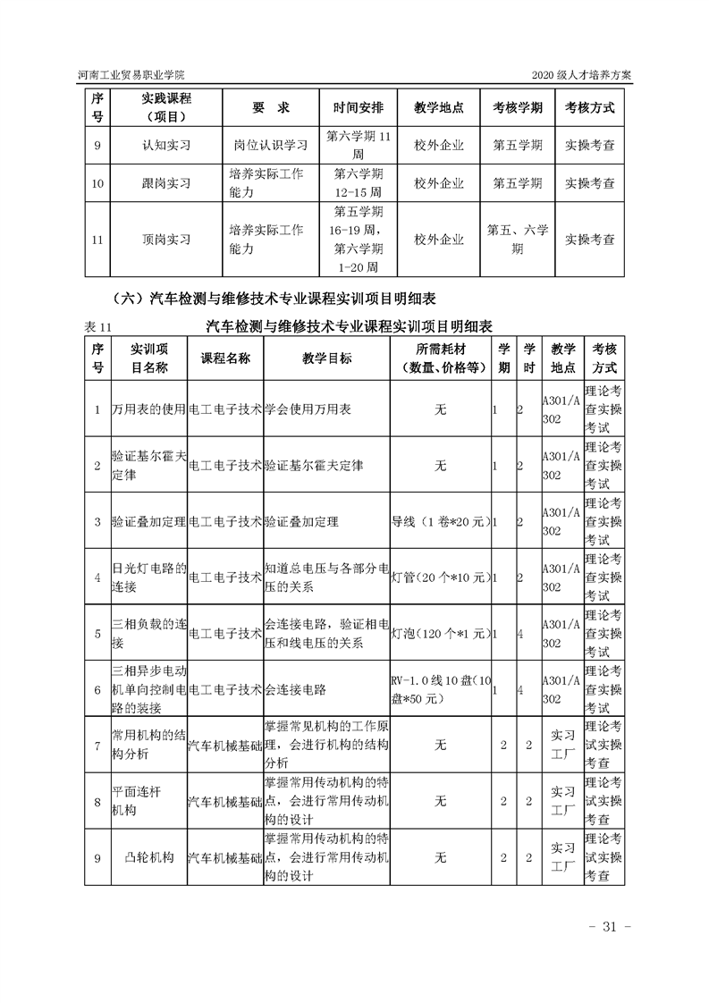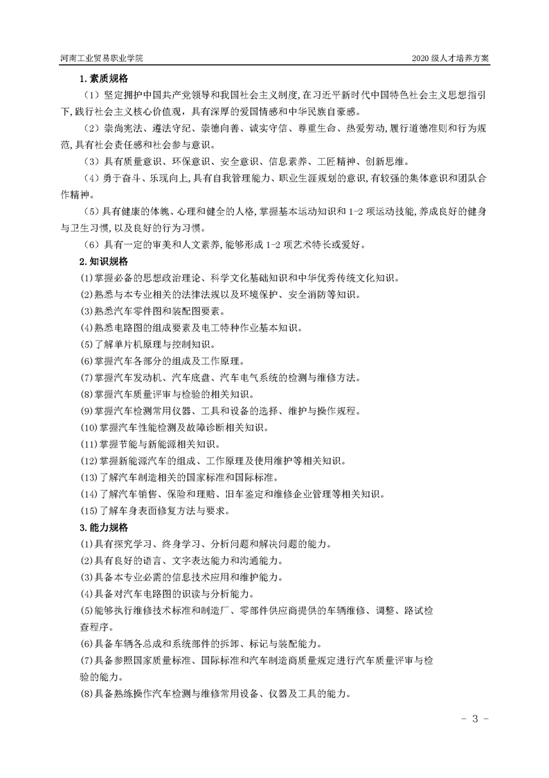 9.2020級汽車檢測與維修技術專業(3年制)人才培養方案