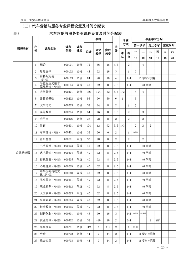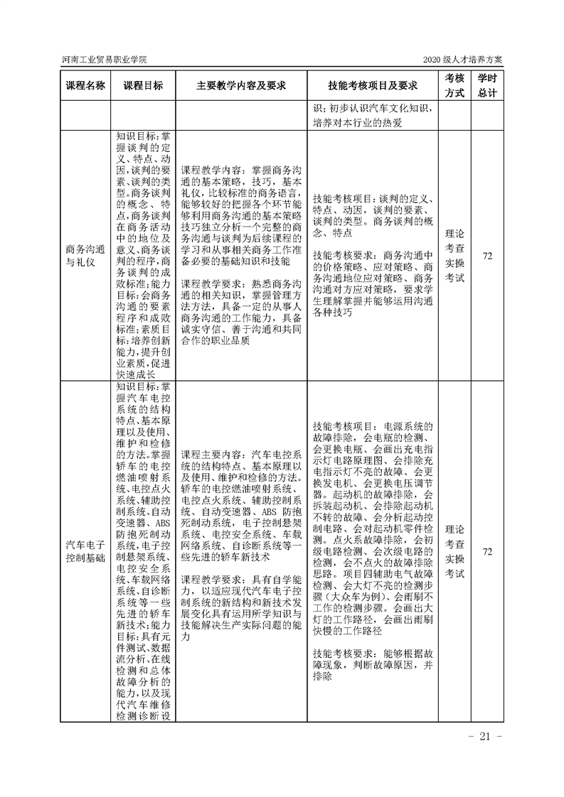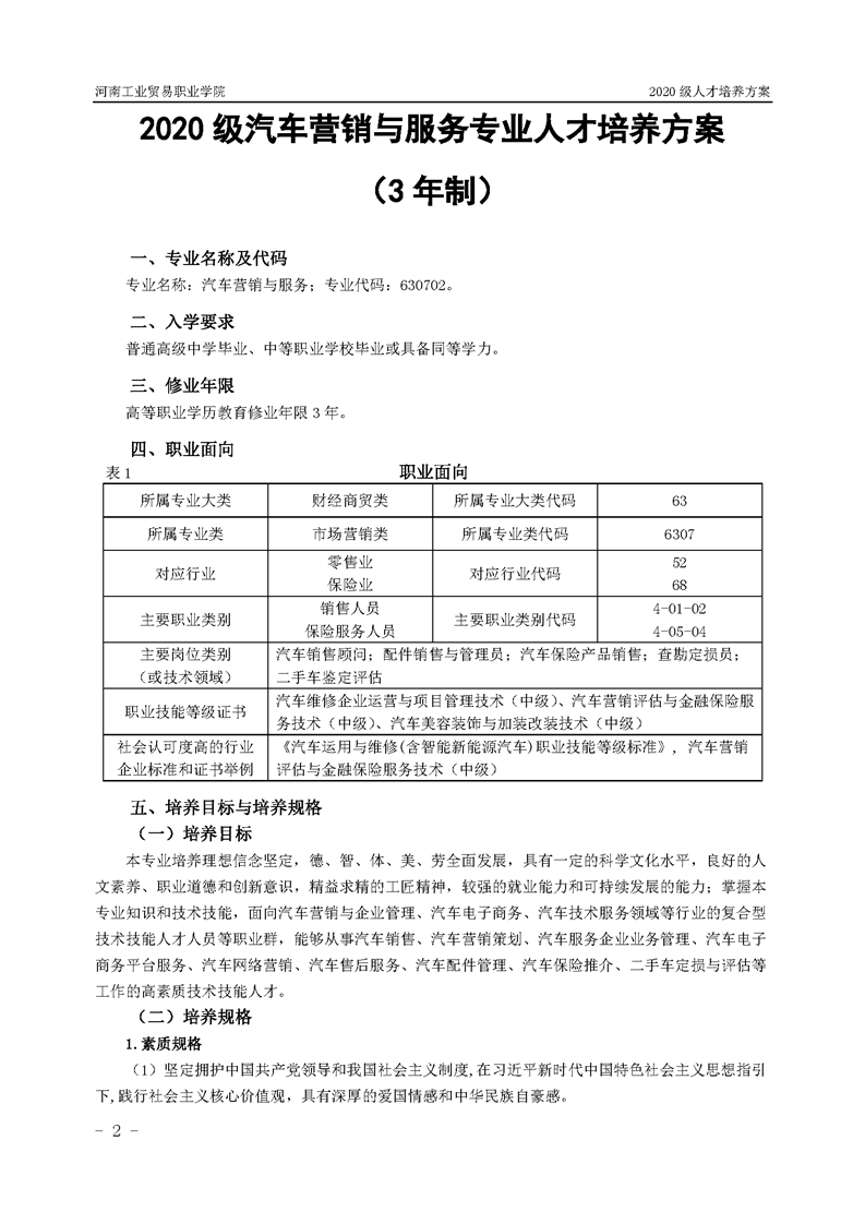 11.2020級汽車營銷與服務專業(3年制)人才培養方案