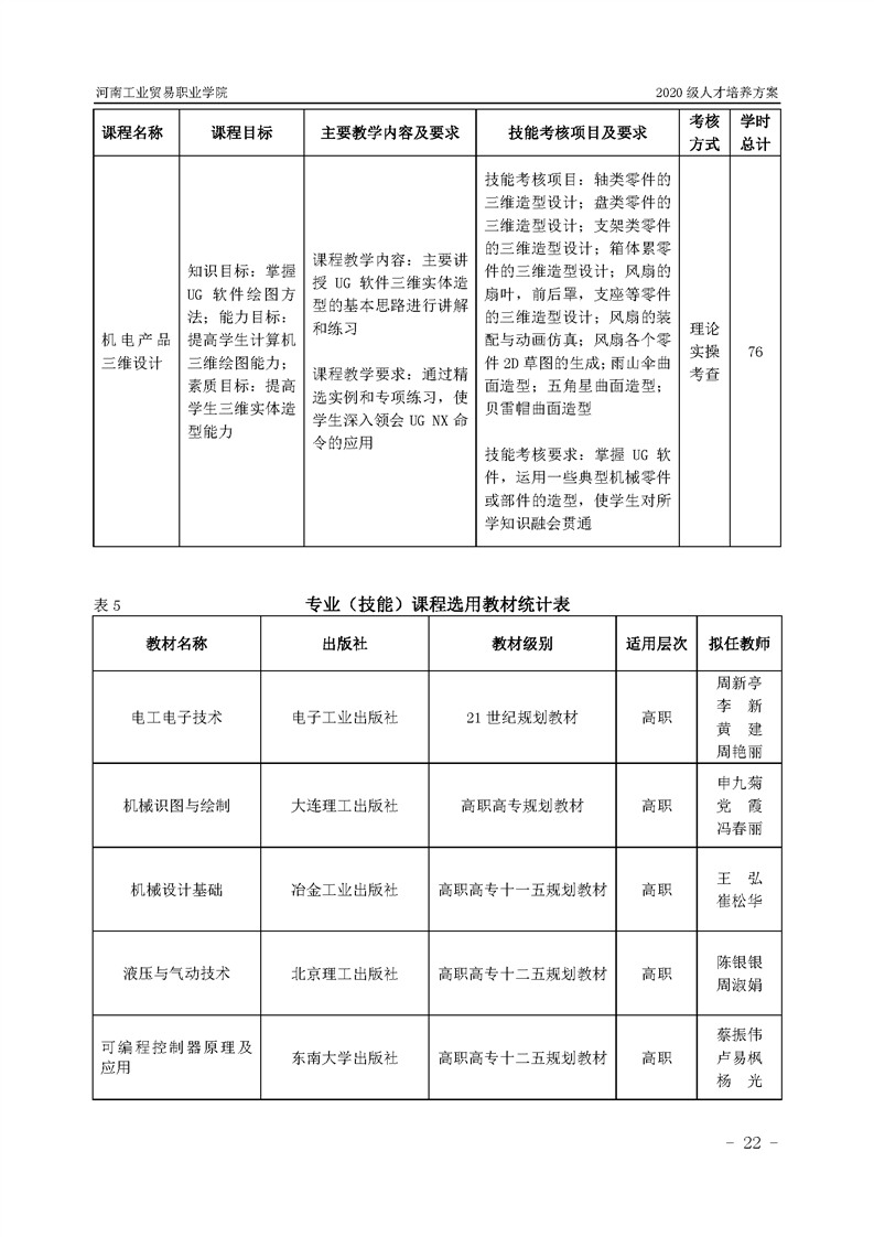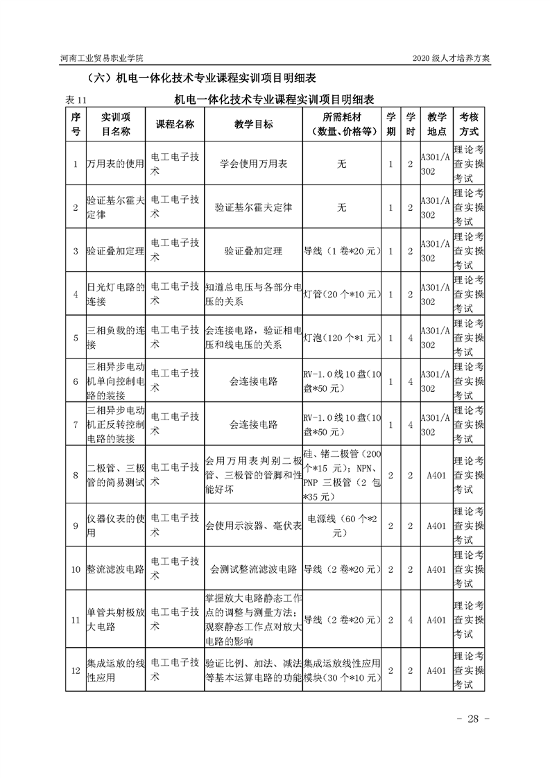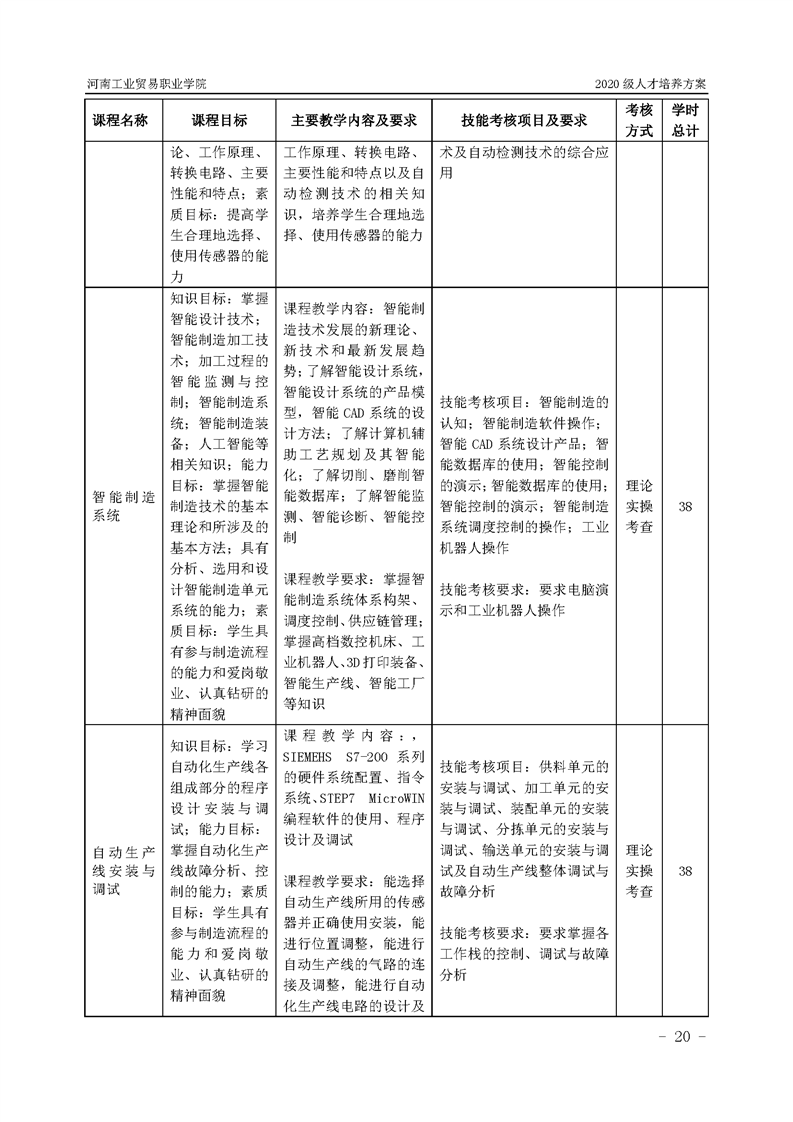 15.2020級機電一體化技術專業(2年制)人才培養方案