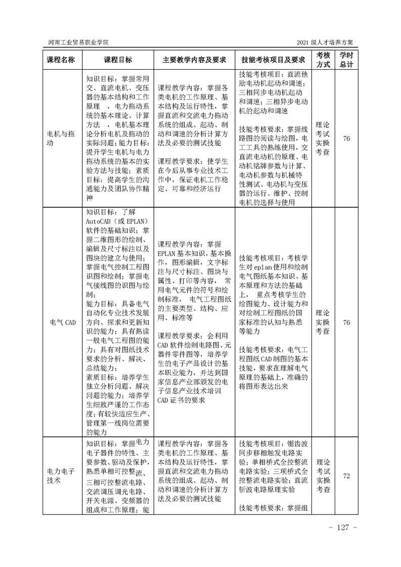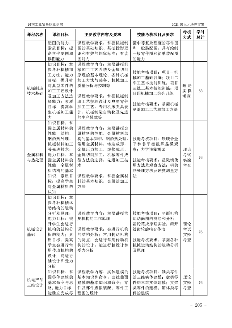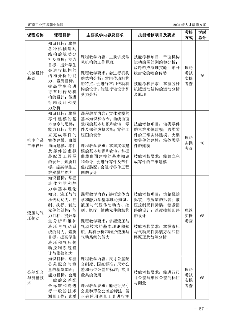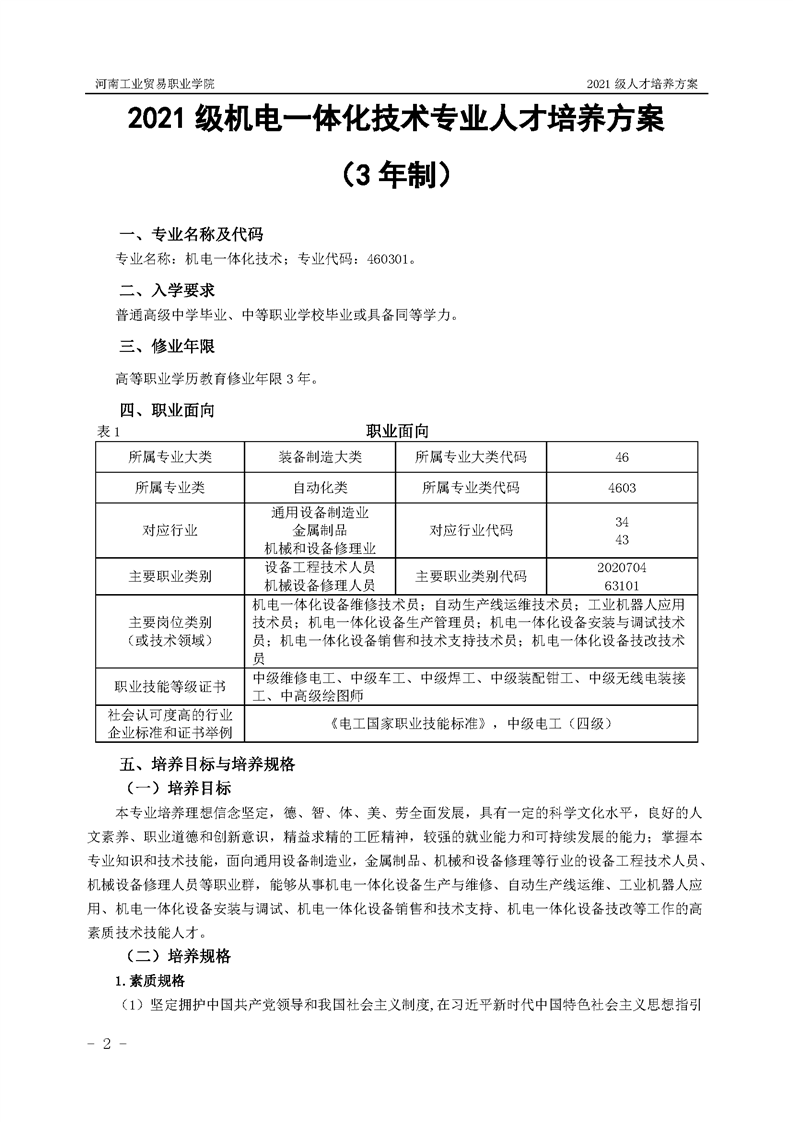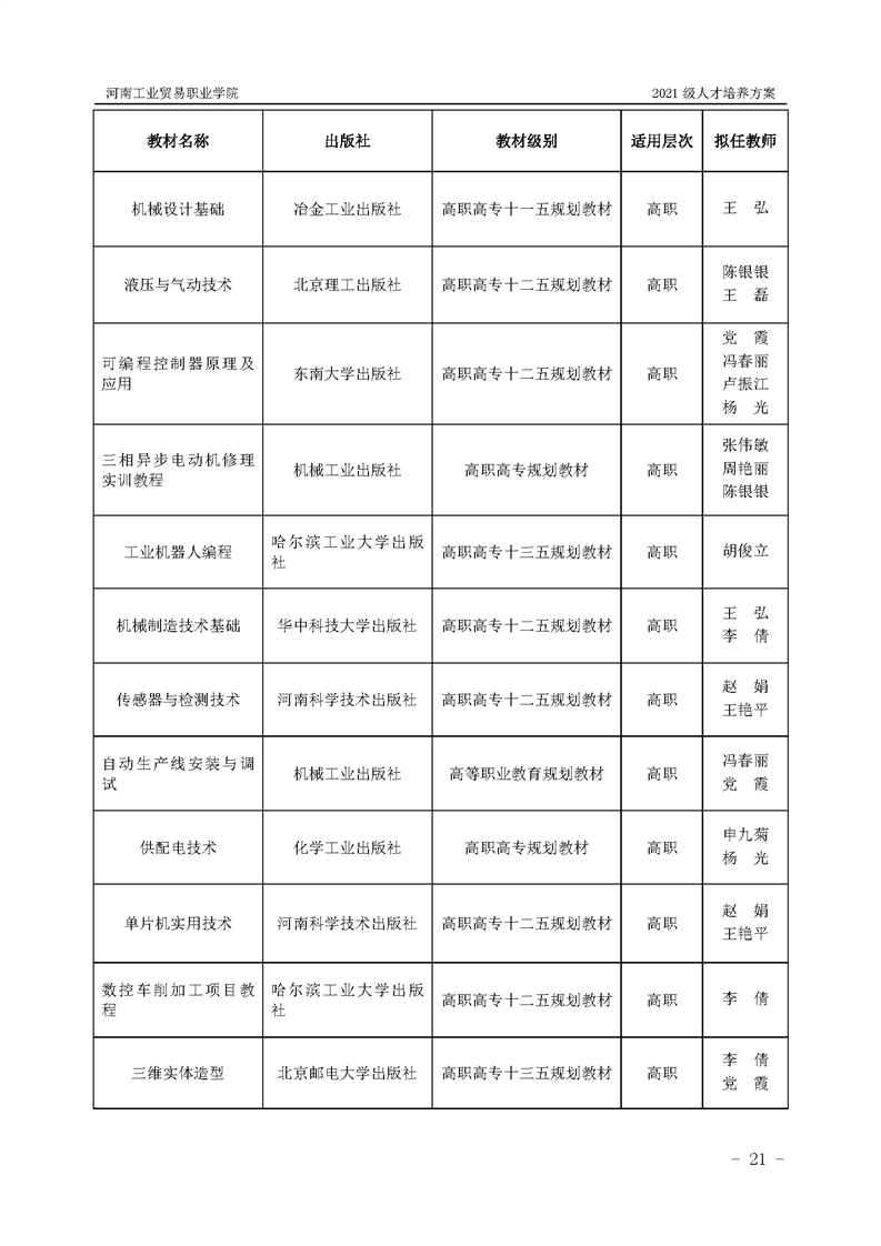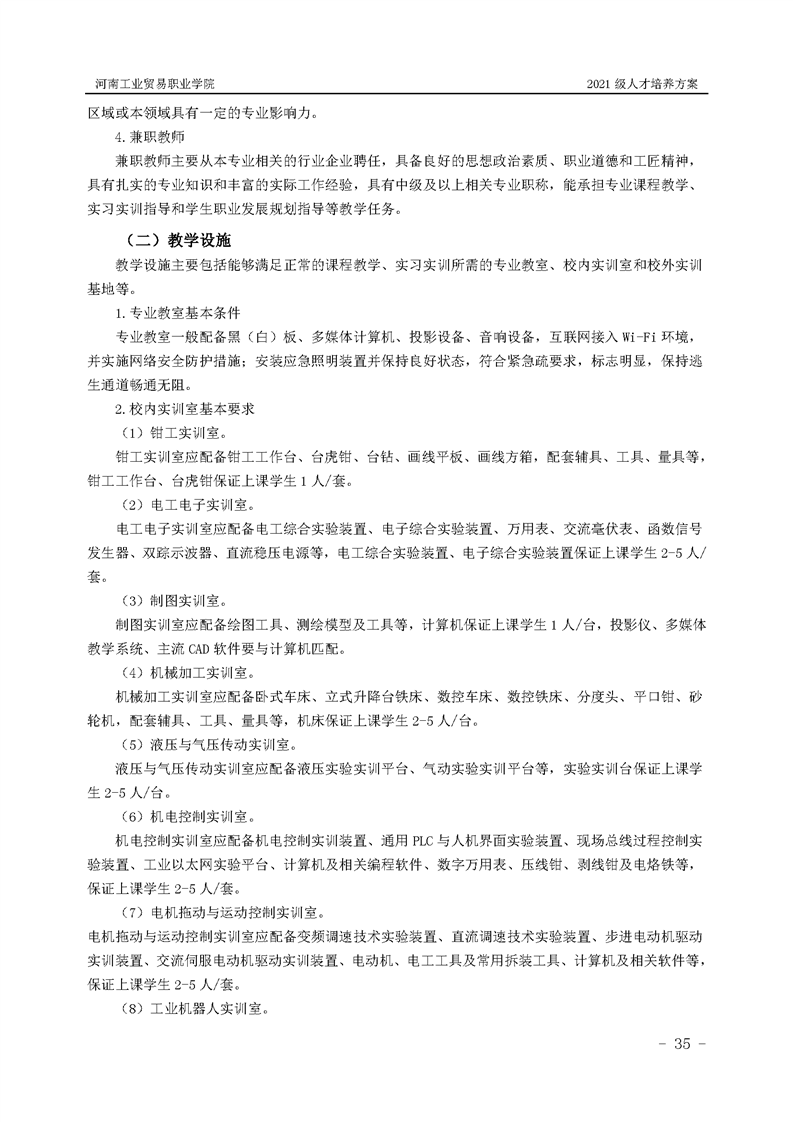 2.河南工業(yè)貿(mào)易職業(yè)學(xué)院2021級(jí)機(jī)電工程學(xué)院人才培養(yǎng)方案