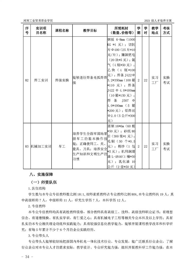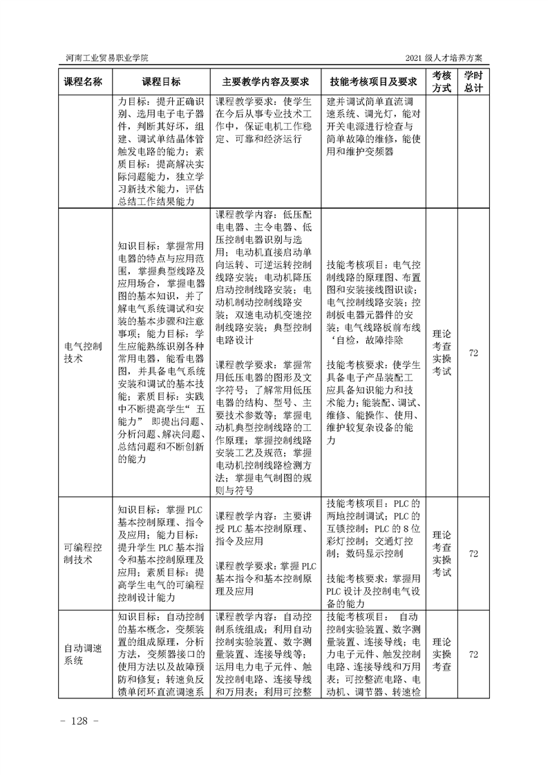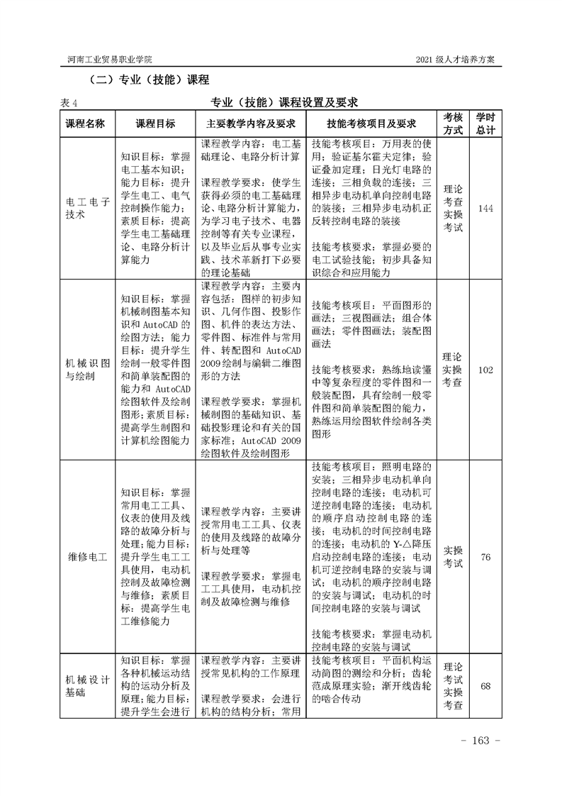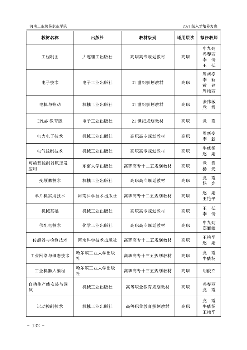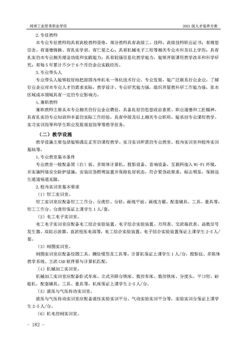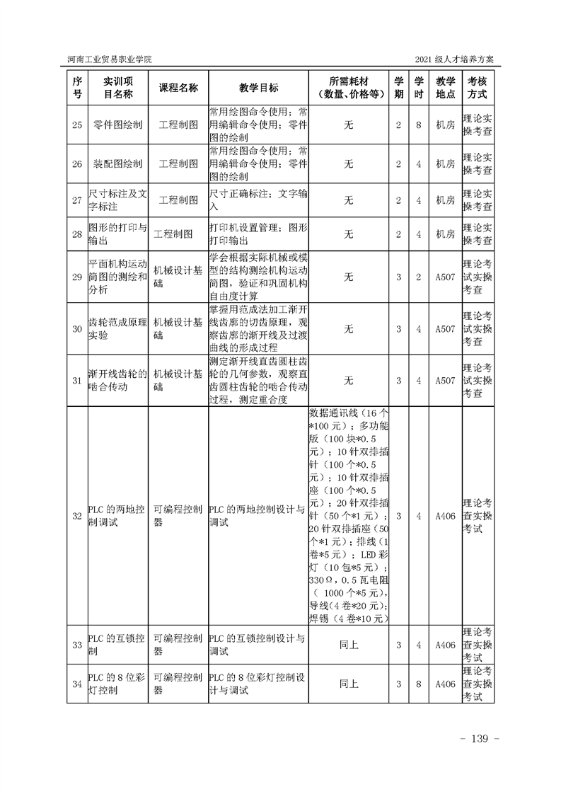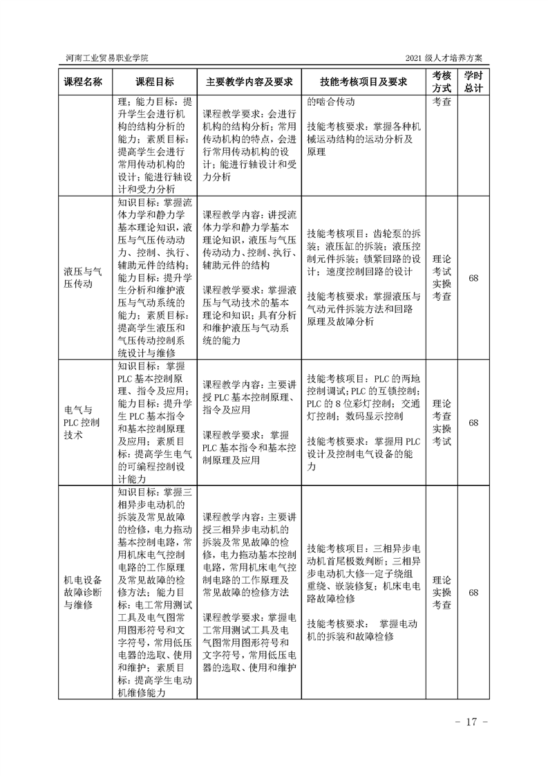 2.河南工業(yè)貿(mào)易職業(yè)學(xué)院2021級(jí)機(jī)電工程學(xué)院人才培養(yǎng)方案