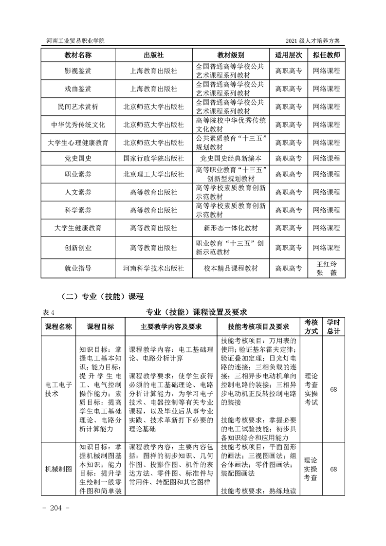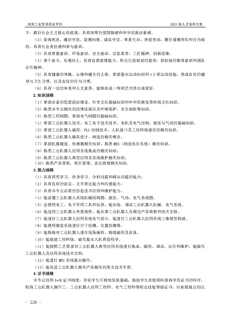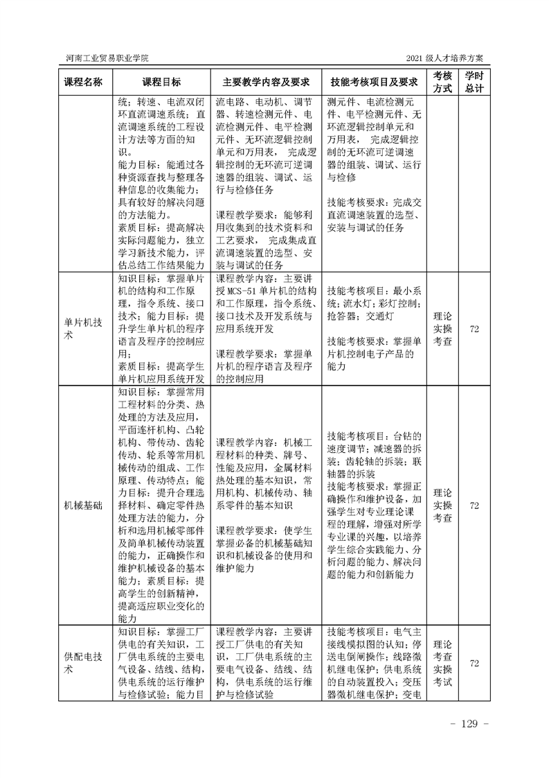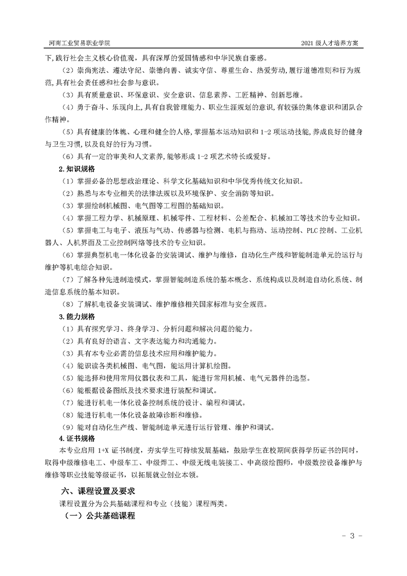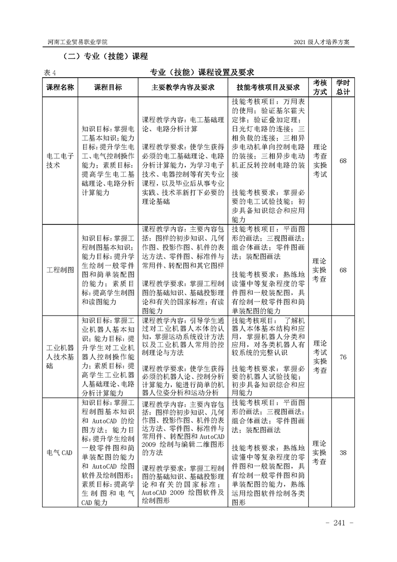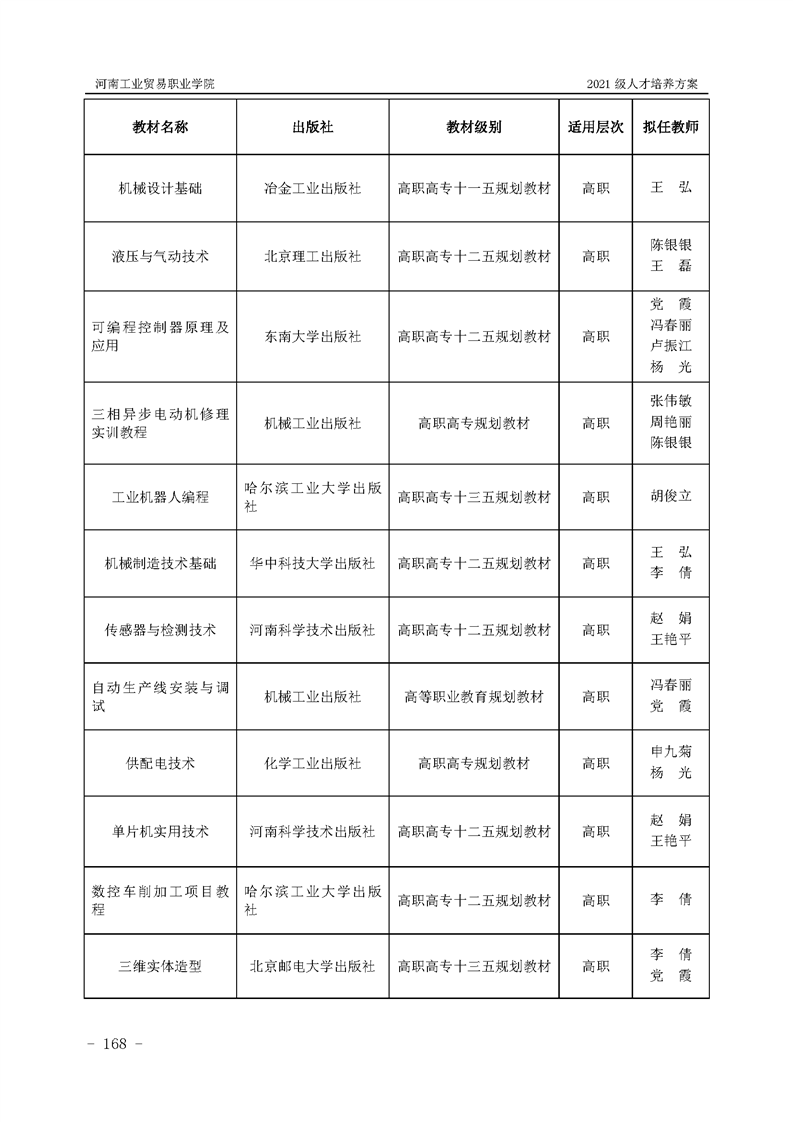 2.河南工業(yè)貿(mào)易職業(yè)學(xué)院2021級(jí)機(jī)電工程學(xué)院人才培養(yǎng)方案