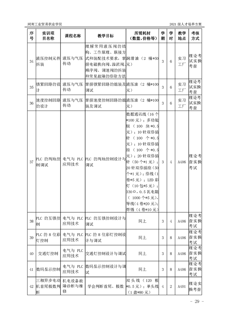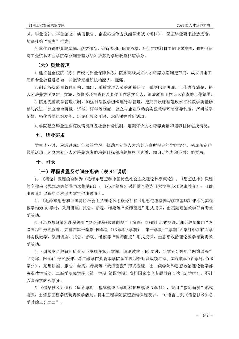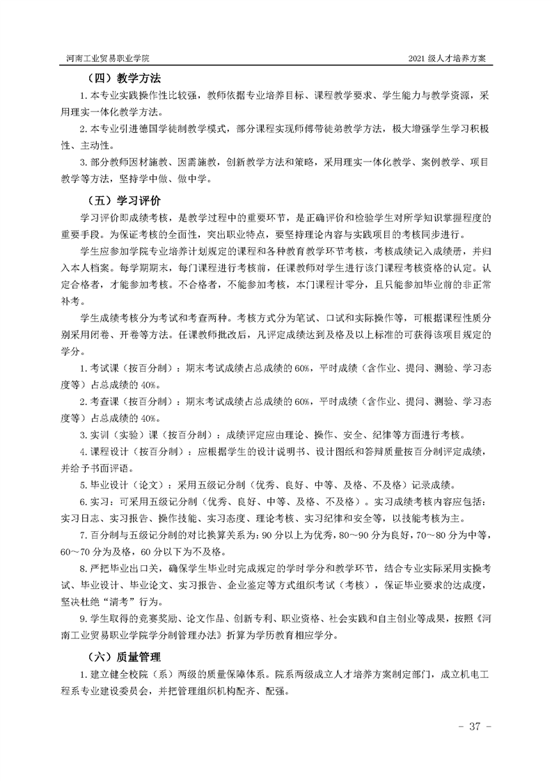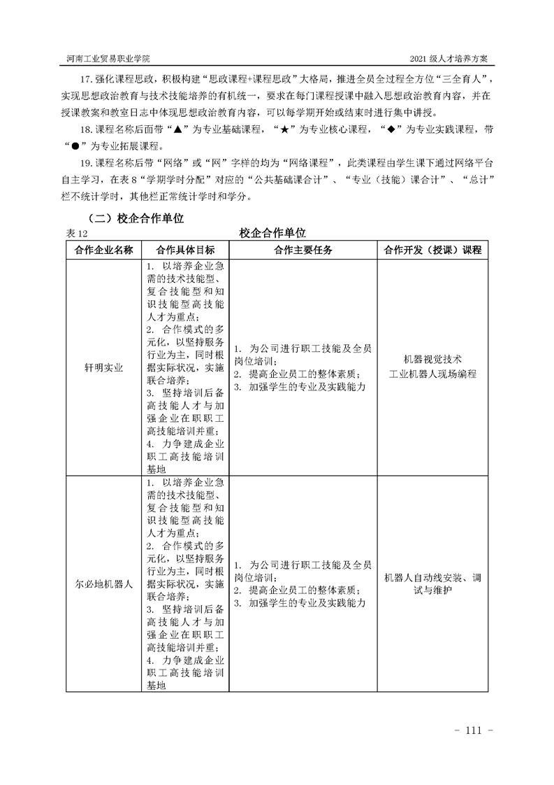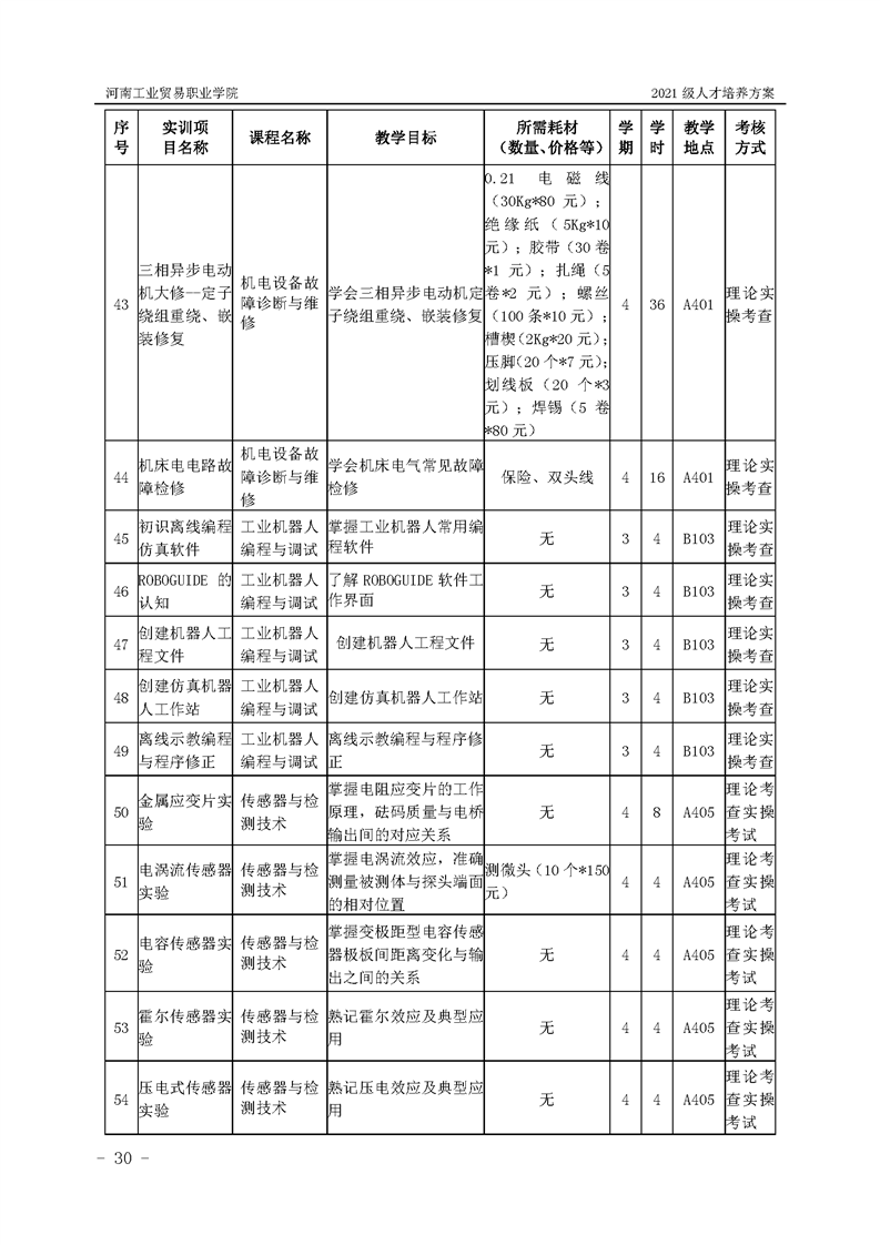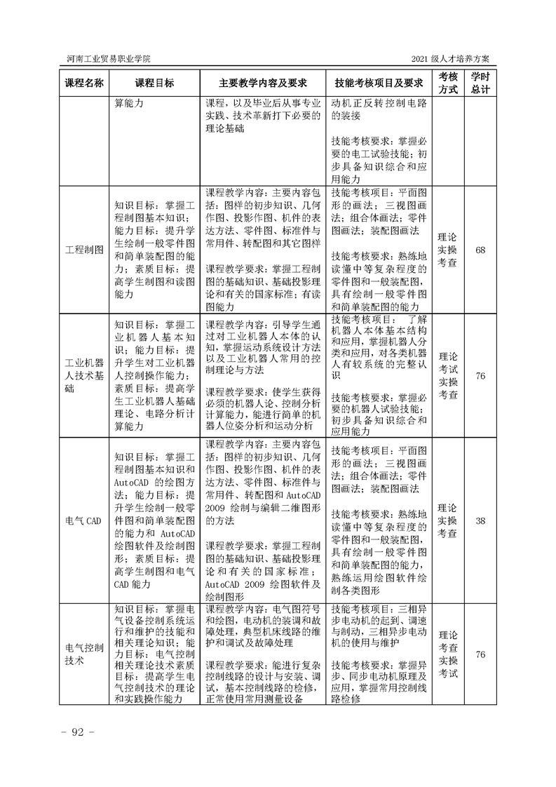 2.河南工業(yè)貿(mào)易職業(yè)學(xué)院2021級(jí)機(jī)電工程學(xué)院人才培養(yǎng)方案