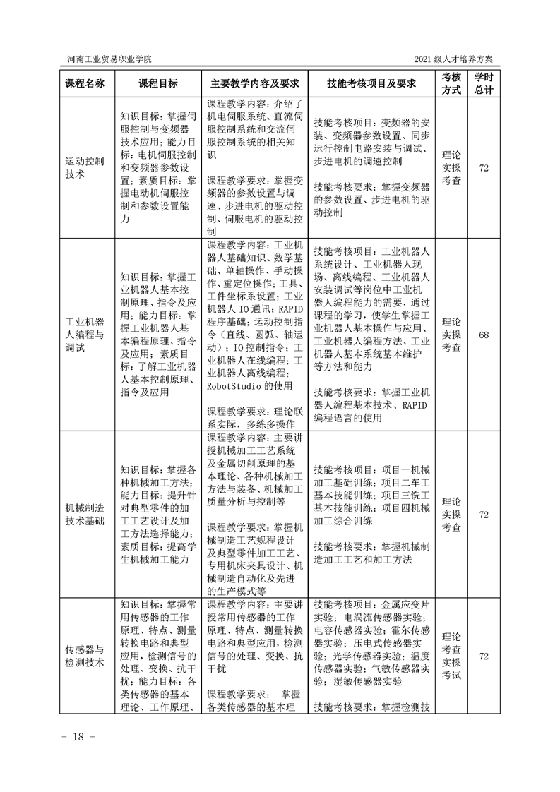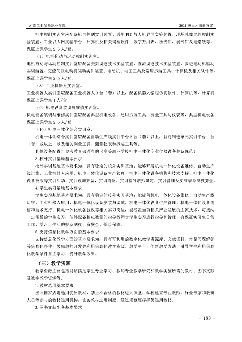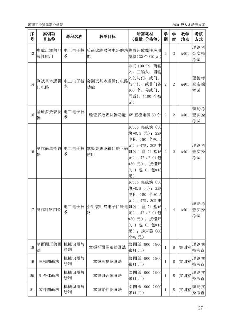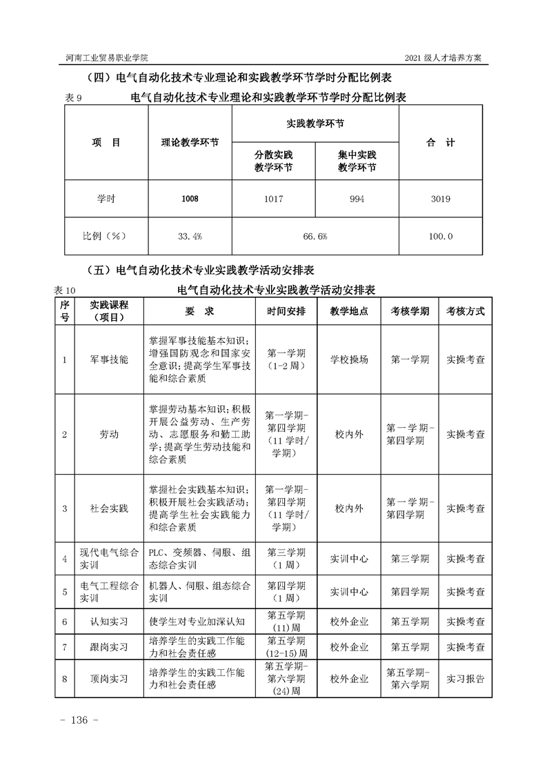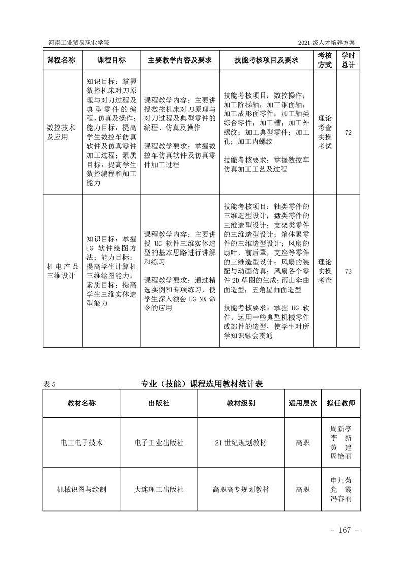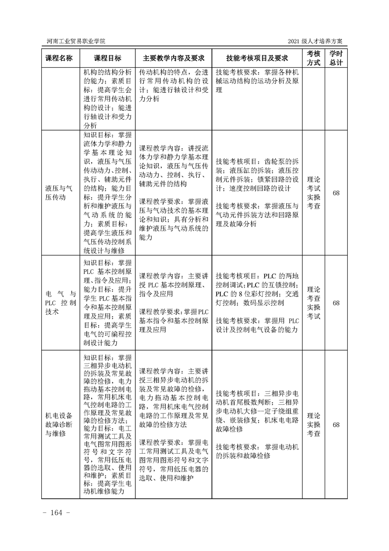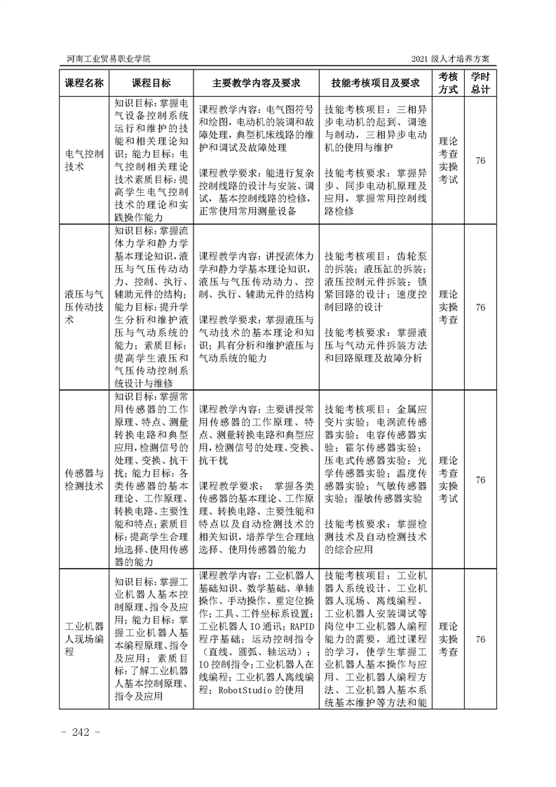 2.河南工業(yè)貿(mào)易職業(yè)學(xué)院2021級(jí)機(jī)電工程學(xué)院人才培養(yǎng)方案