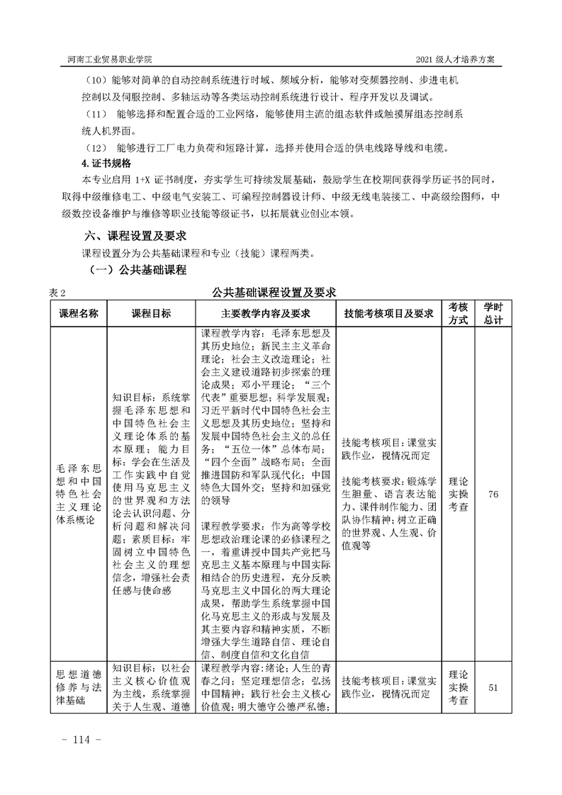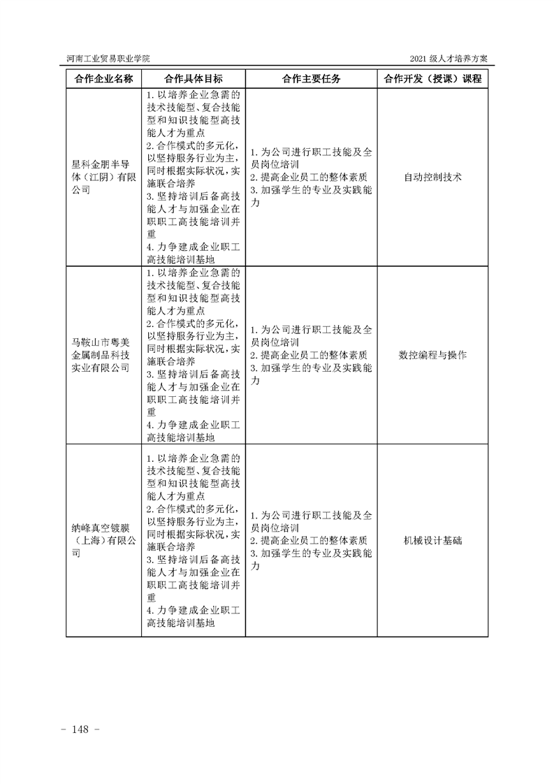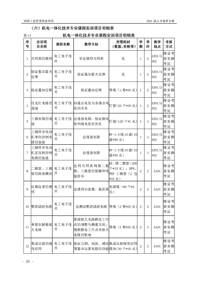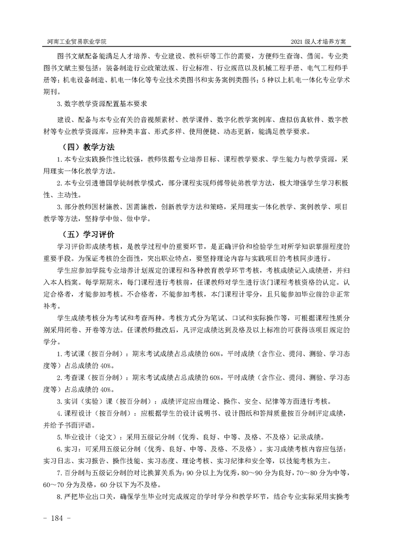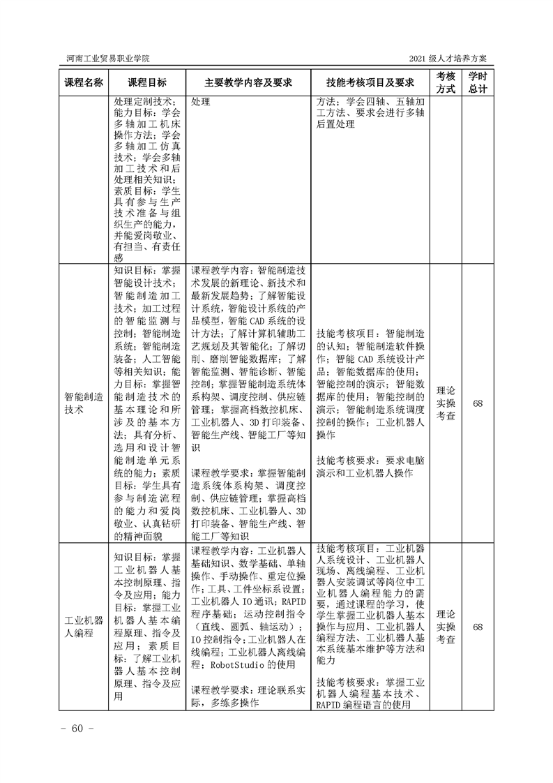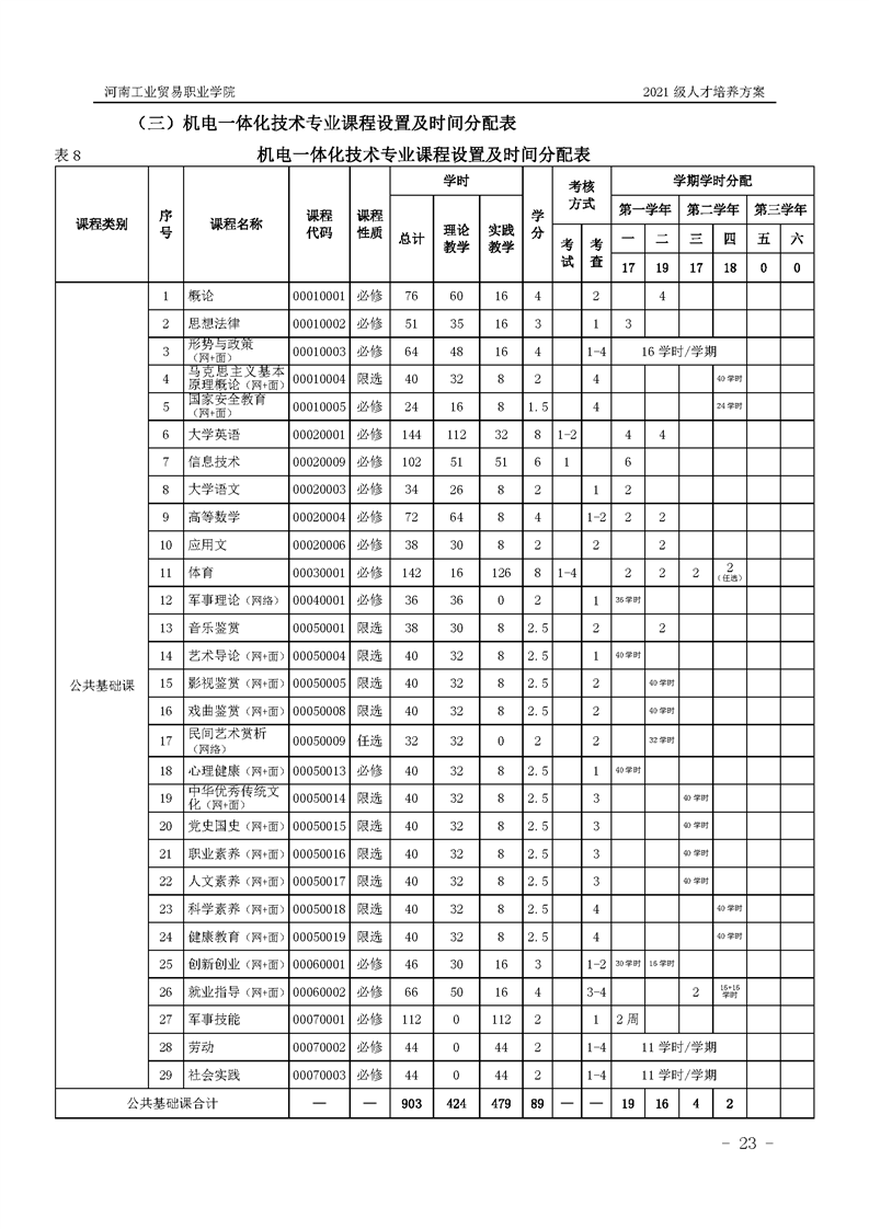 2.河南工業(yè)貿(mào)易職業(yè)學(xué)院2021級(jí)機(jī)電工程學(xué)院人才培養(yǎng)方案