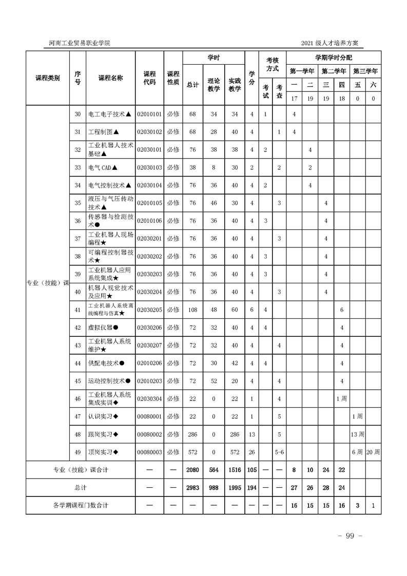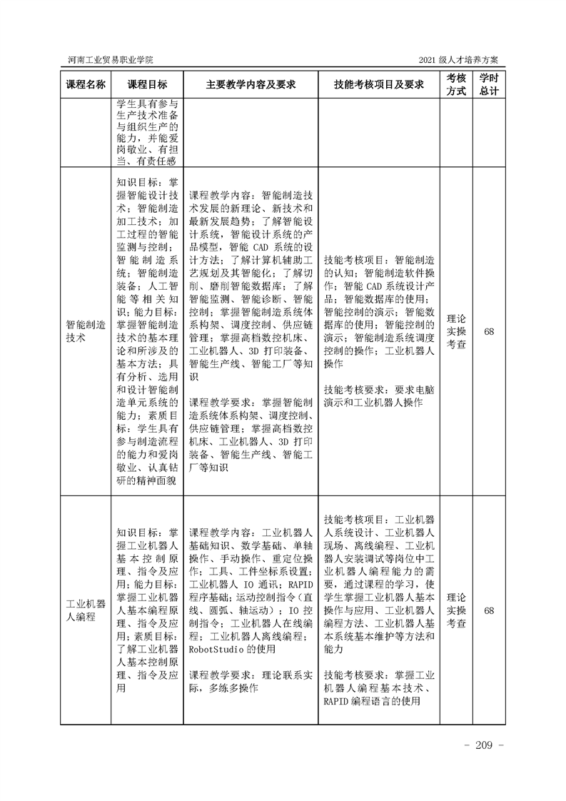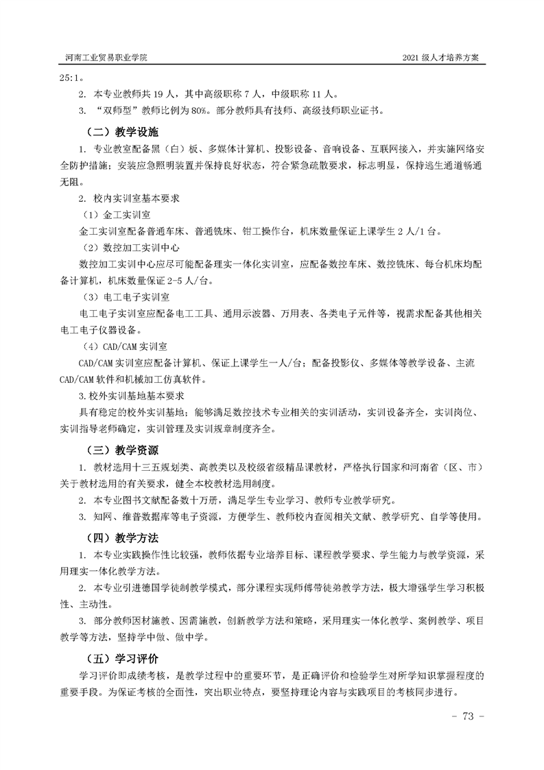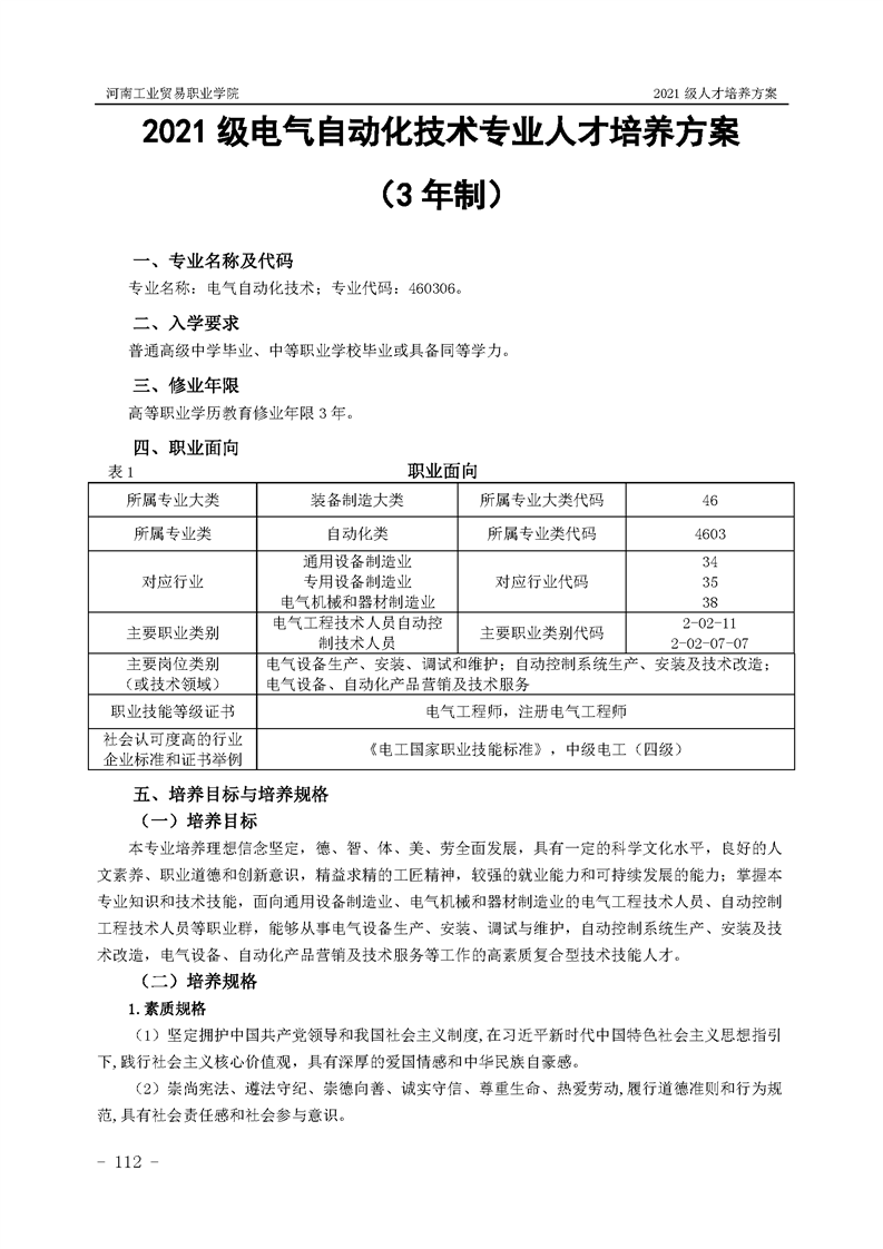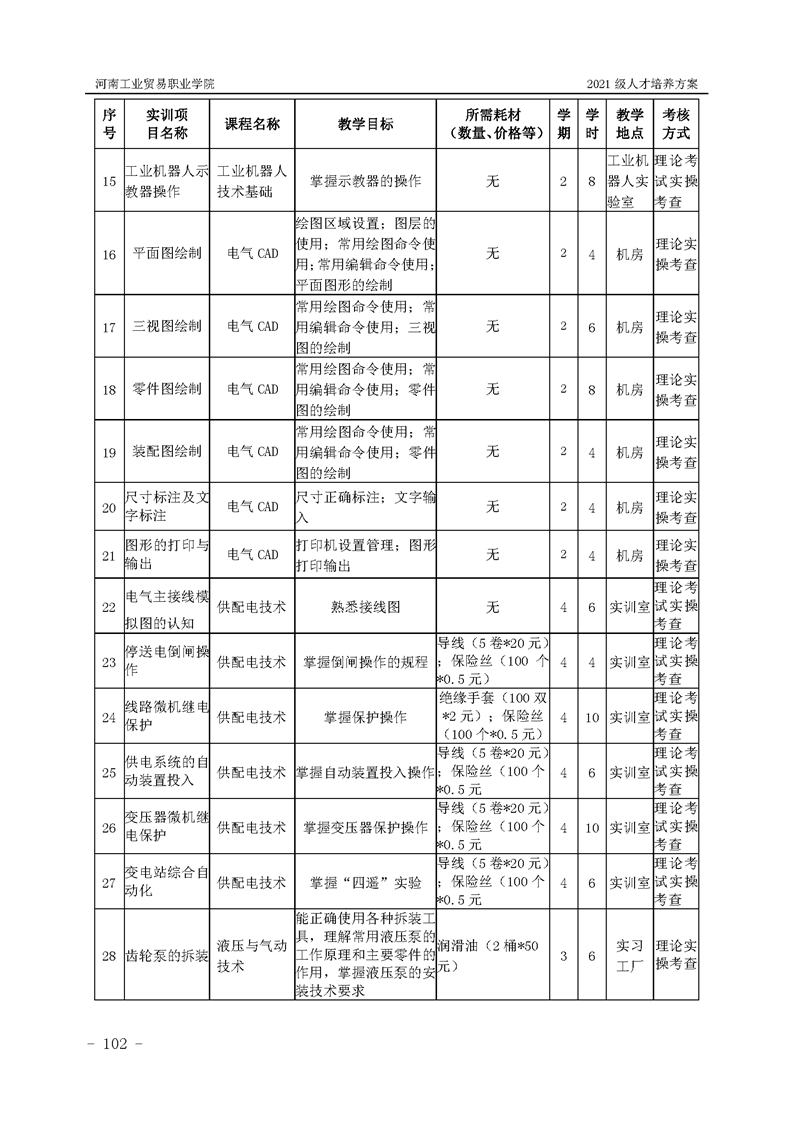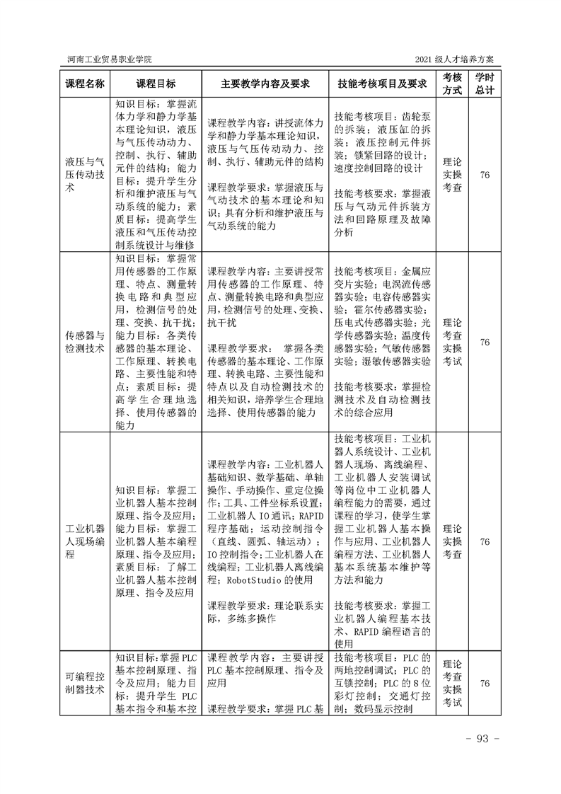 2.河南工業(yè)貿(mào)易職業(yè)學(xué)院2021級(jí)機(jī)電工程學(xué)院人才培養(yǎng)方案