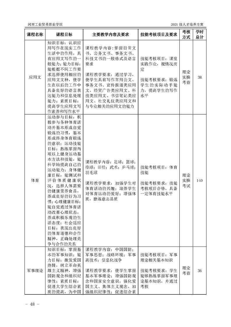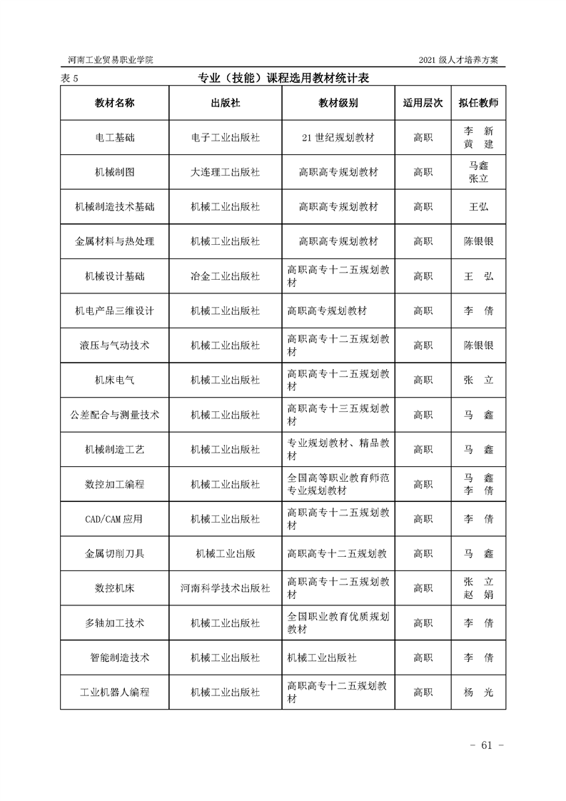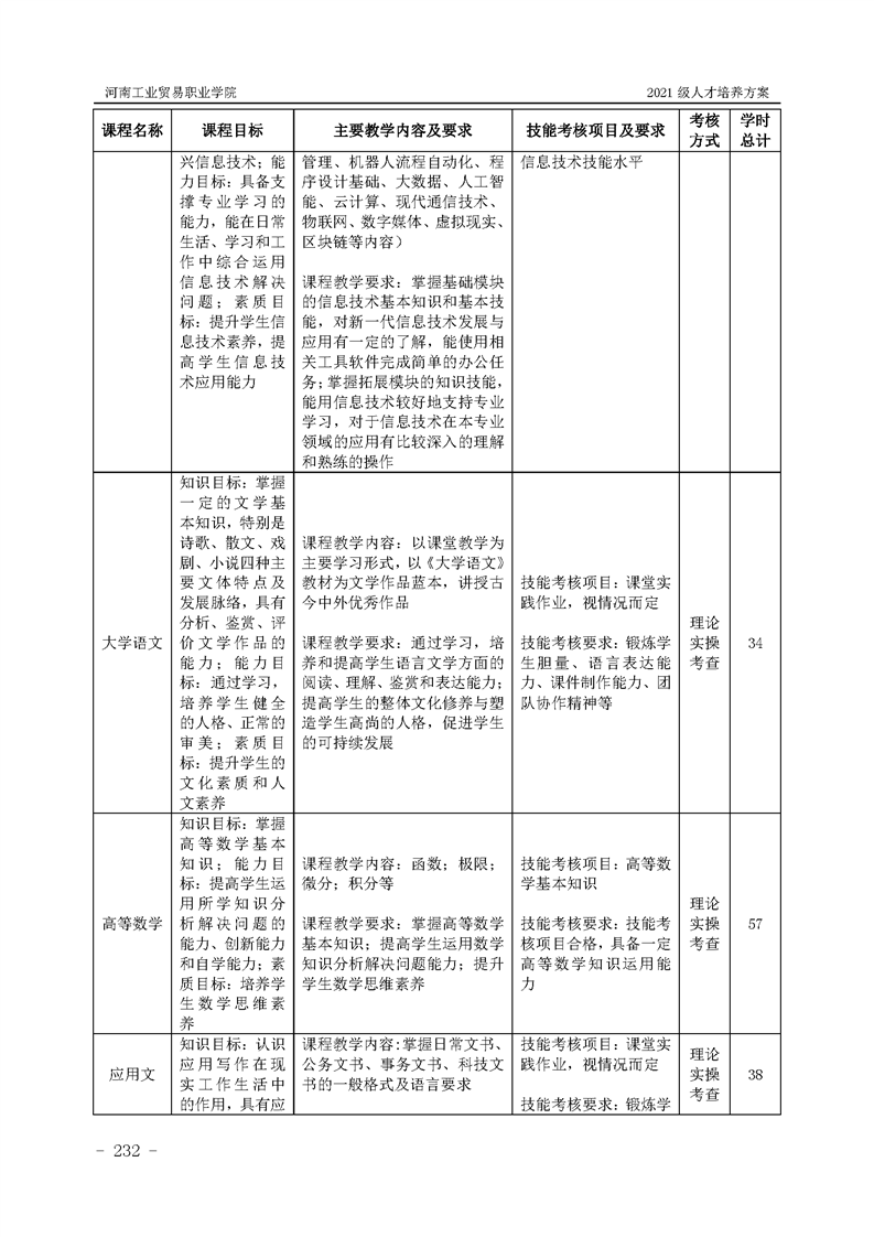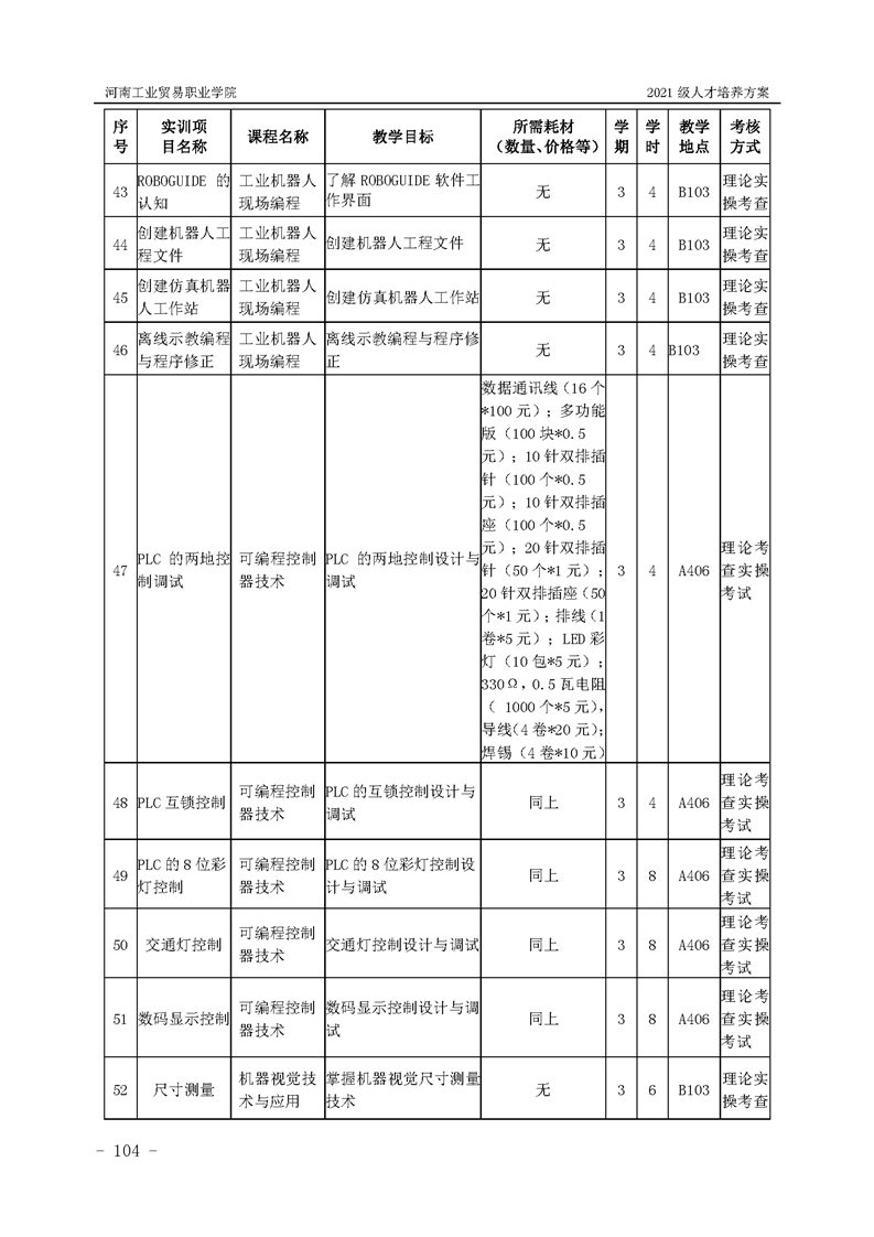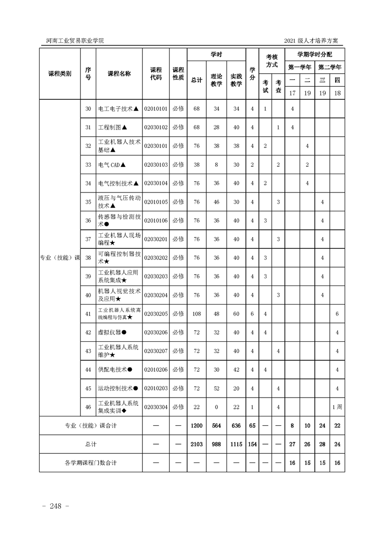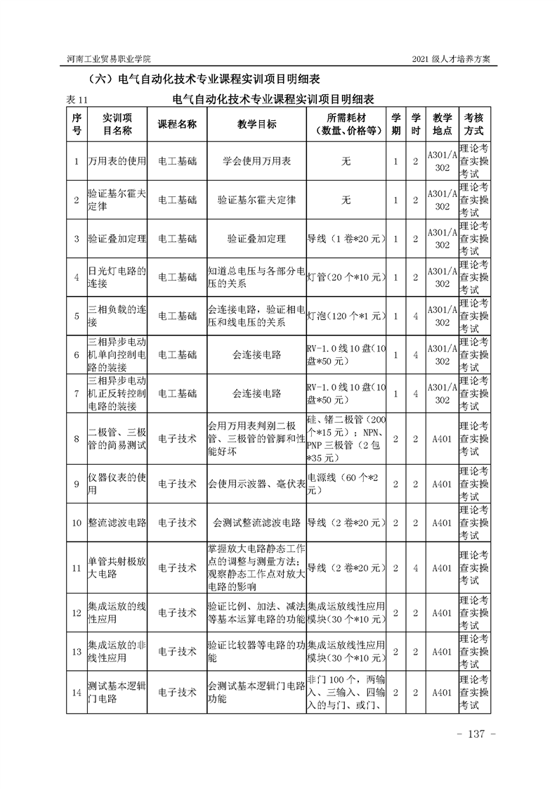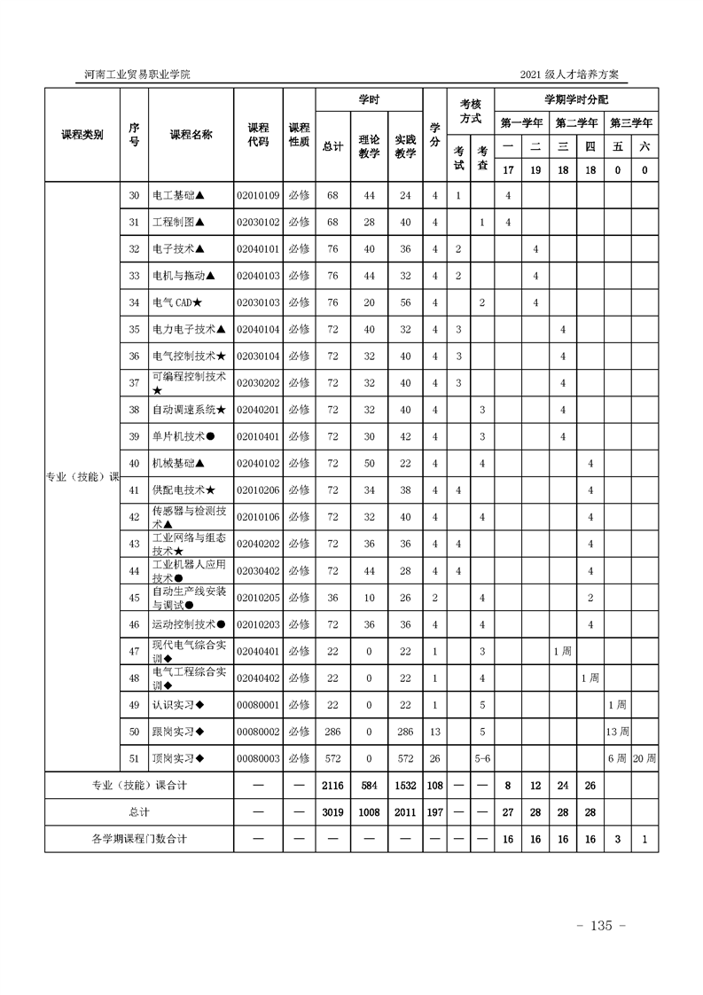 2.河南工業(yè)貿(mào)易職業(yè)學(xué)院2021級(jí)機(jī)電工程學(xué)院人才培養(yǎng)方案