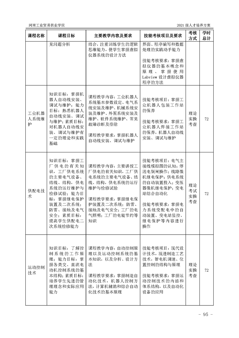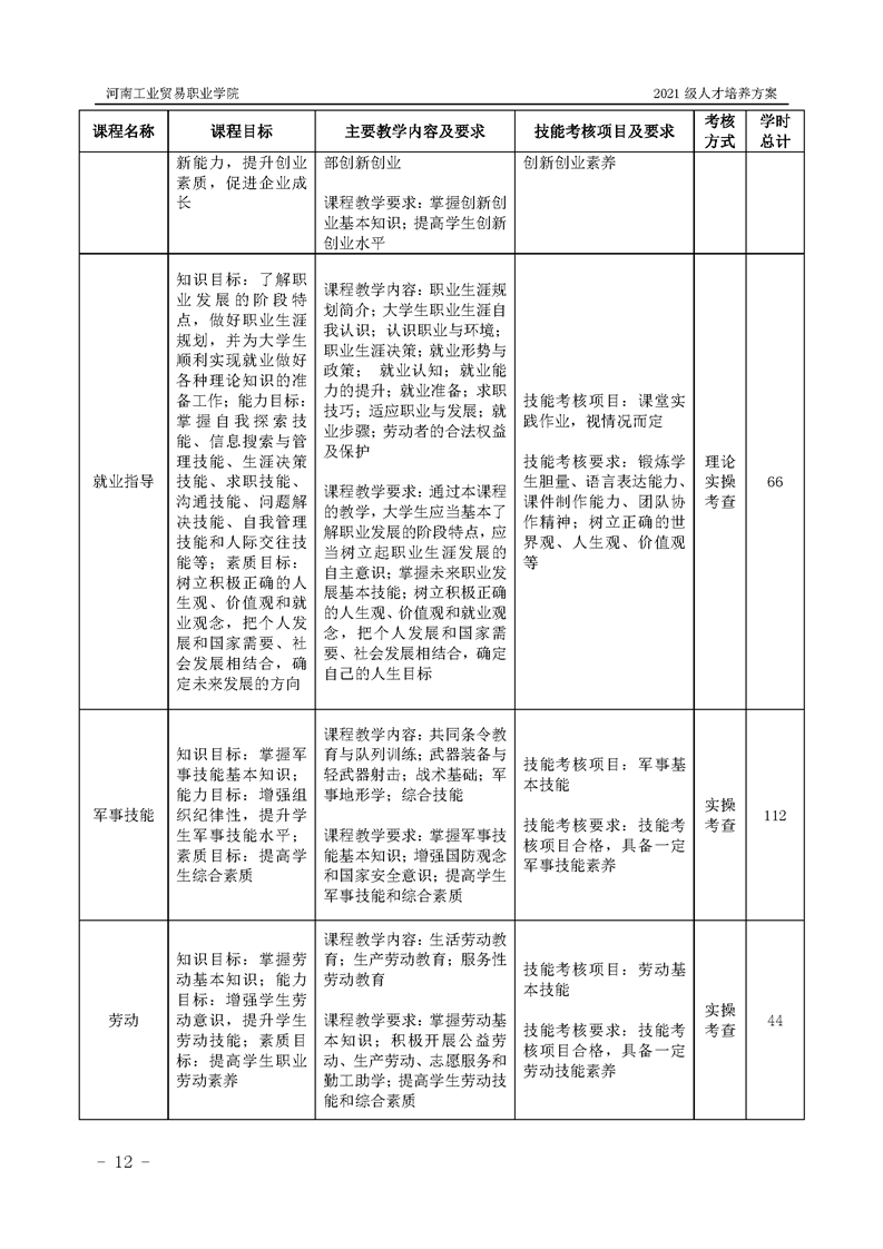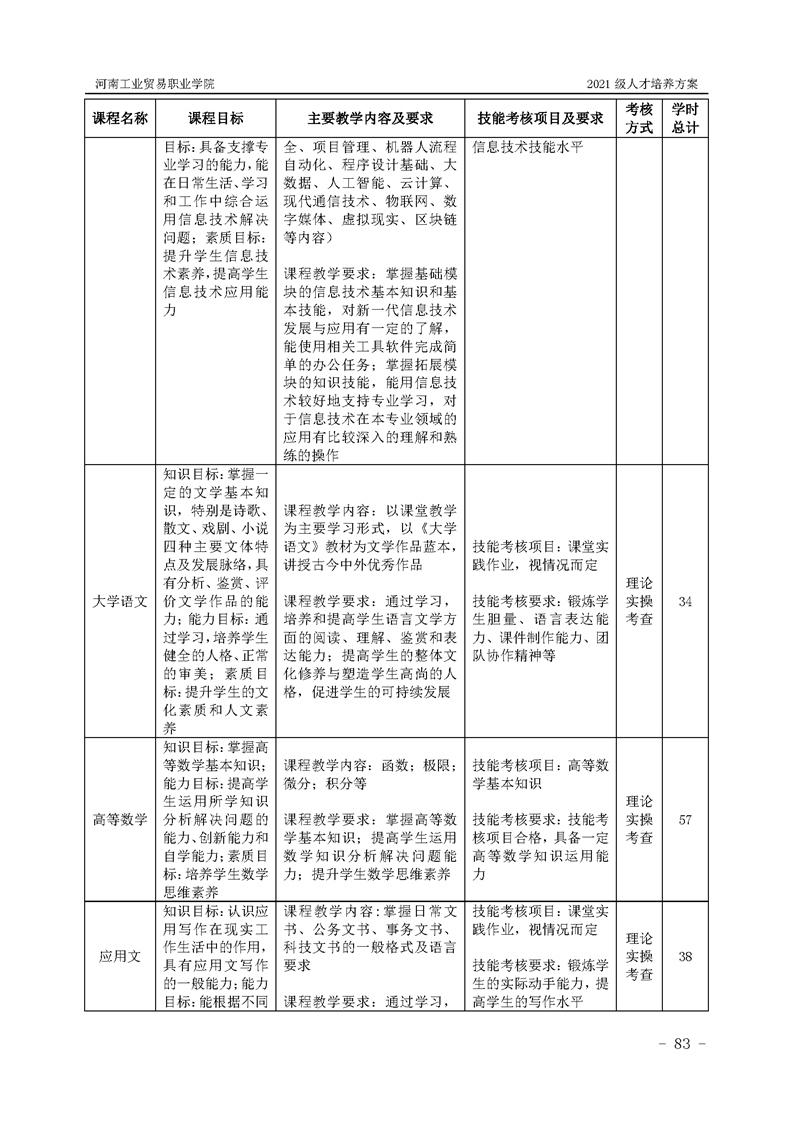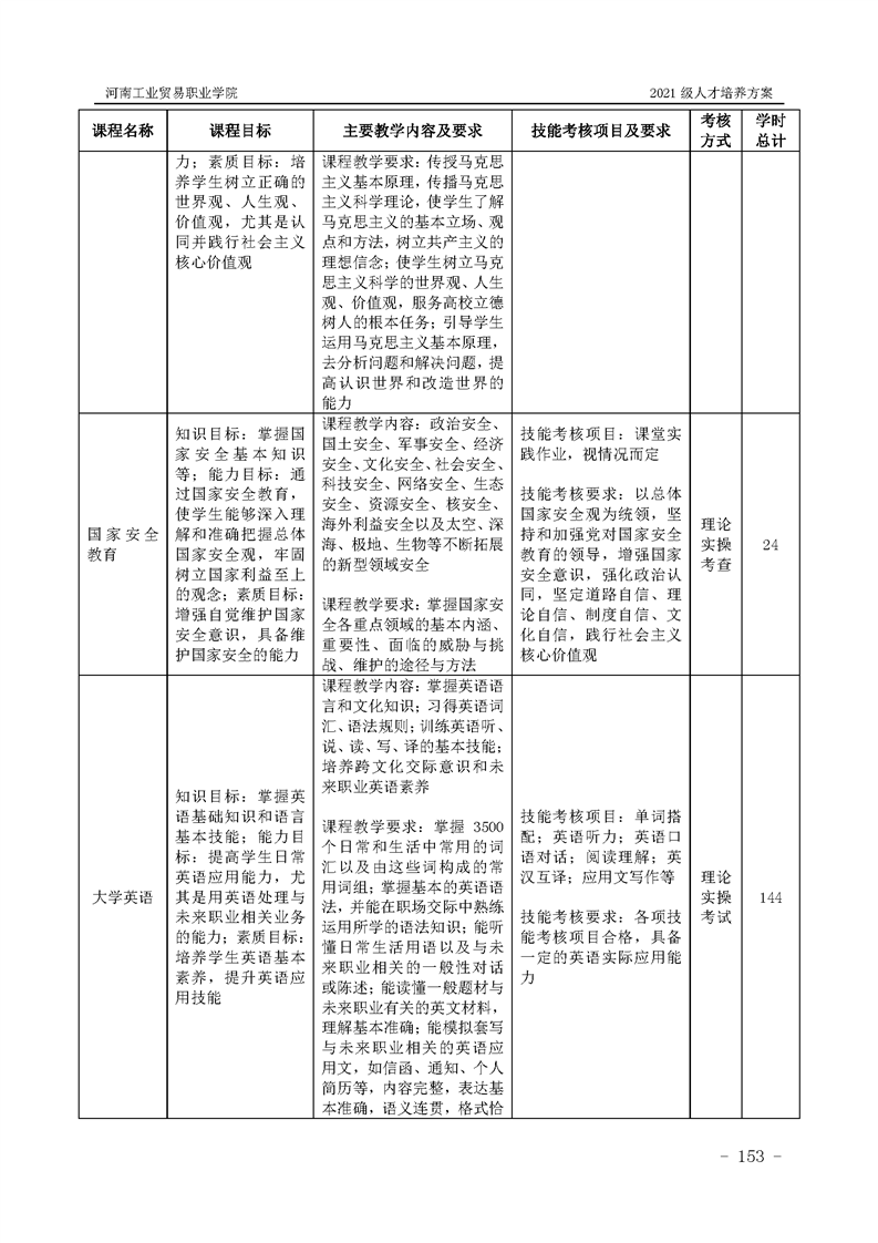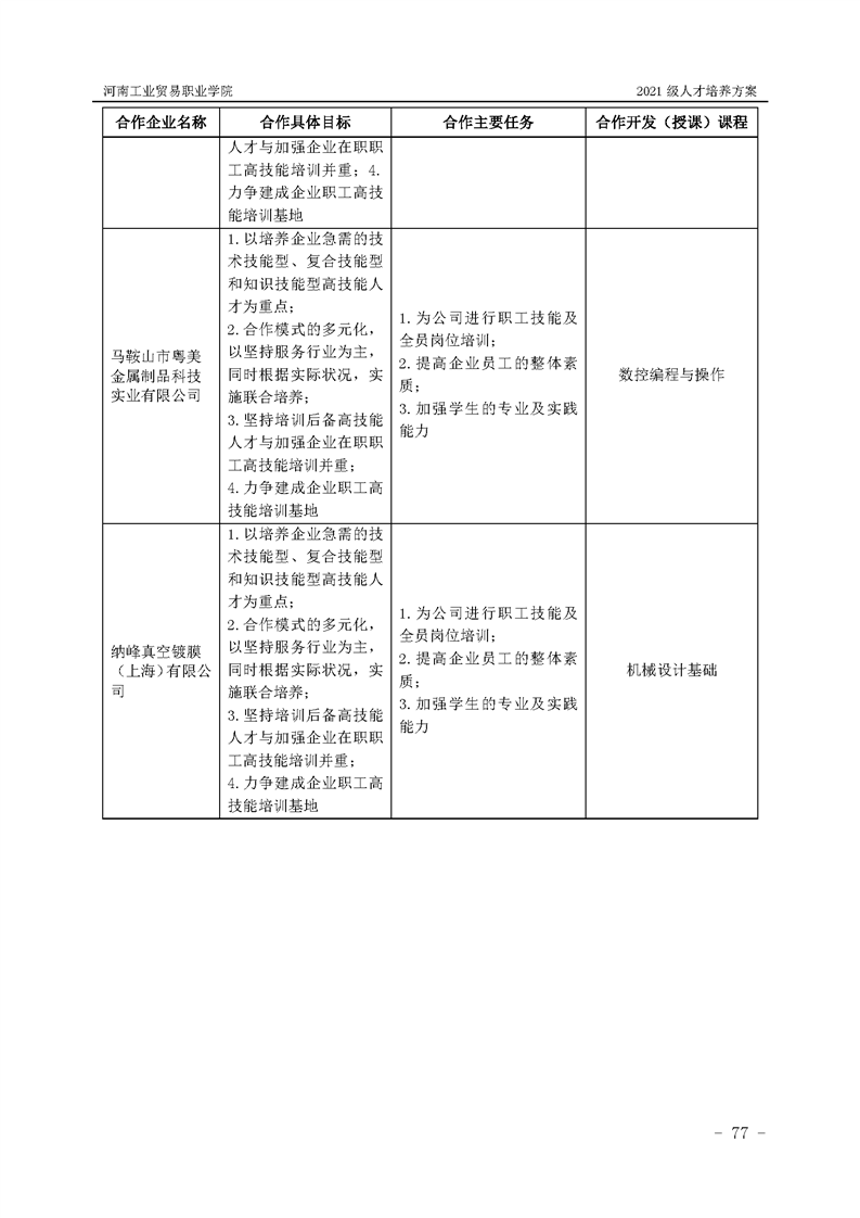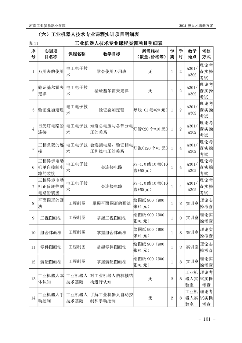 2.河南工業(yè)貿(mào)易職業(yè)學(xué)院2021級(jí)機(jī)電工程學(xué)院人才培養(yǎng)方案