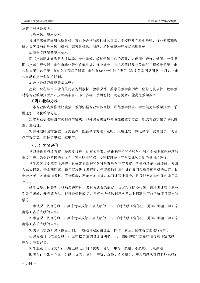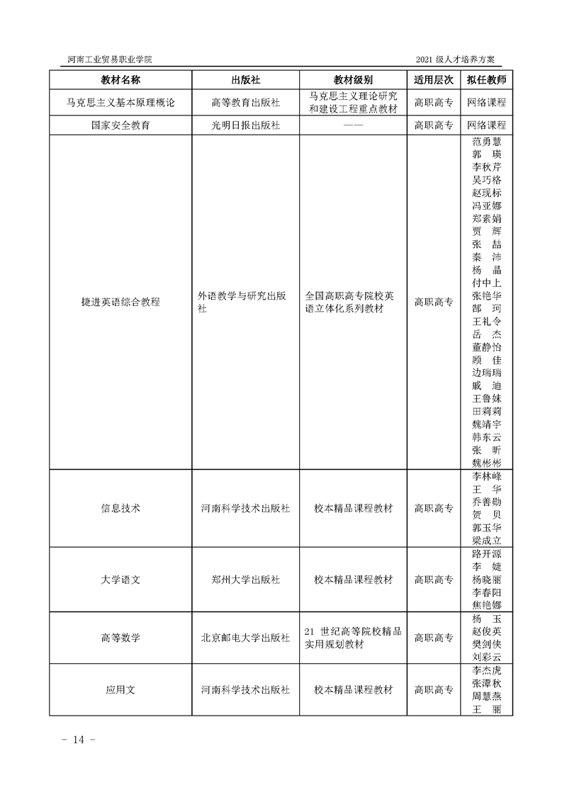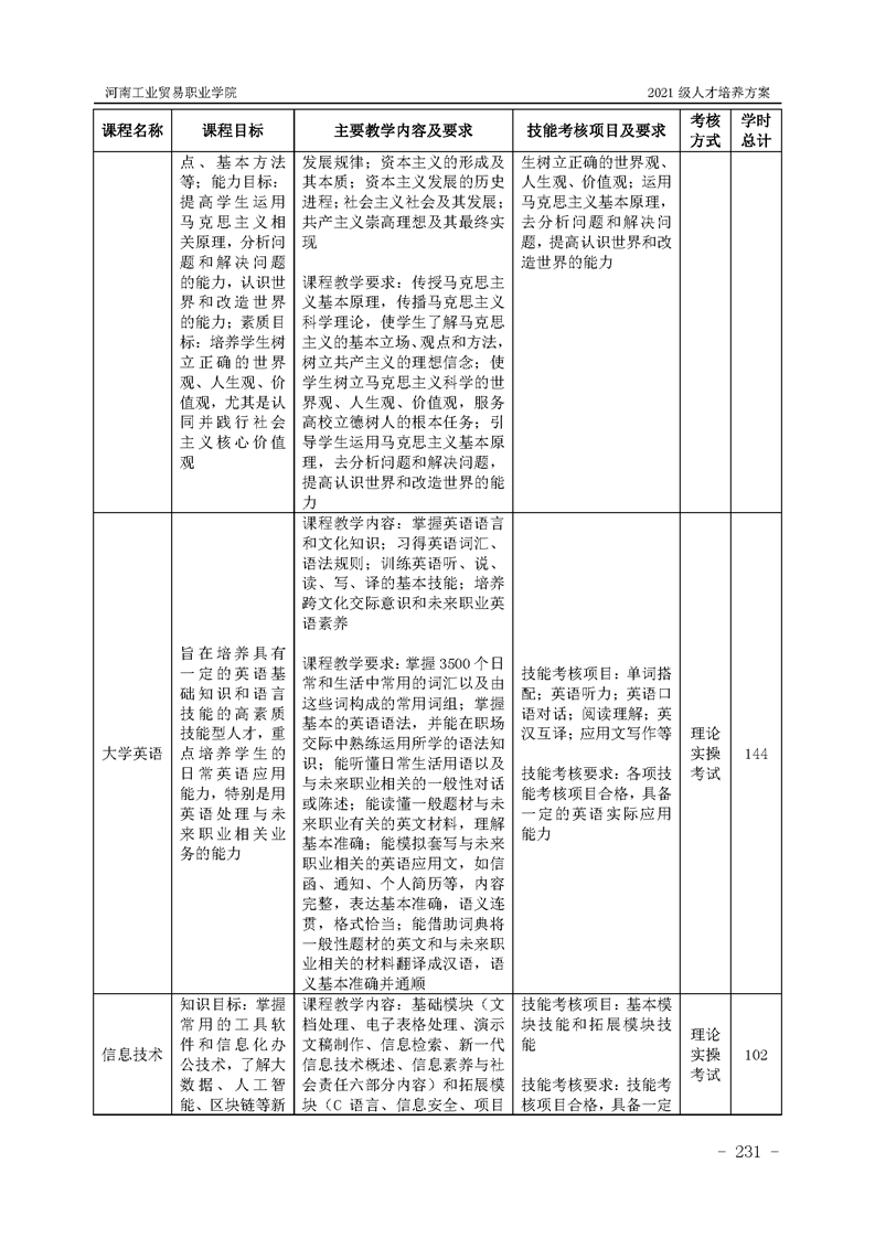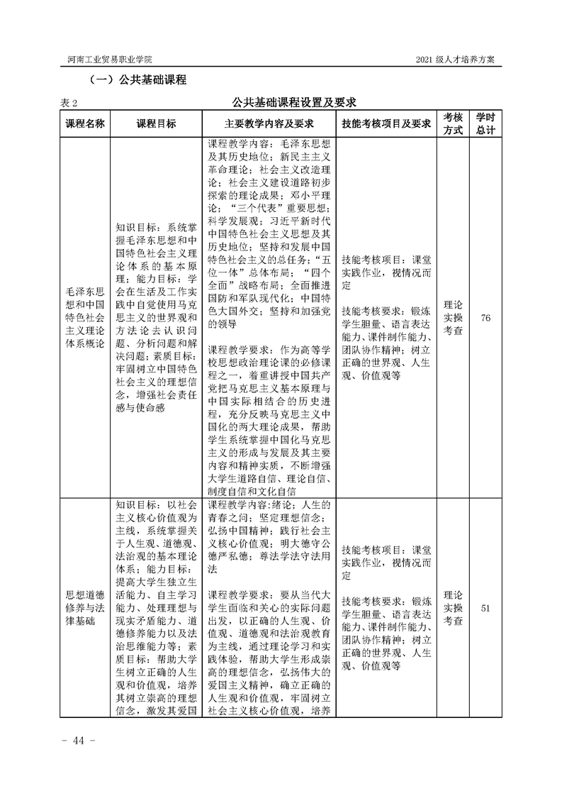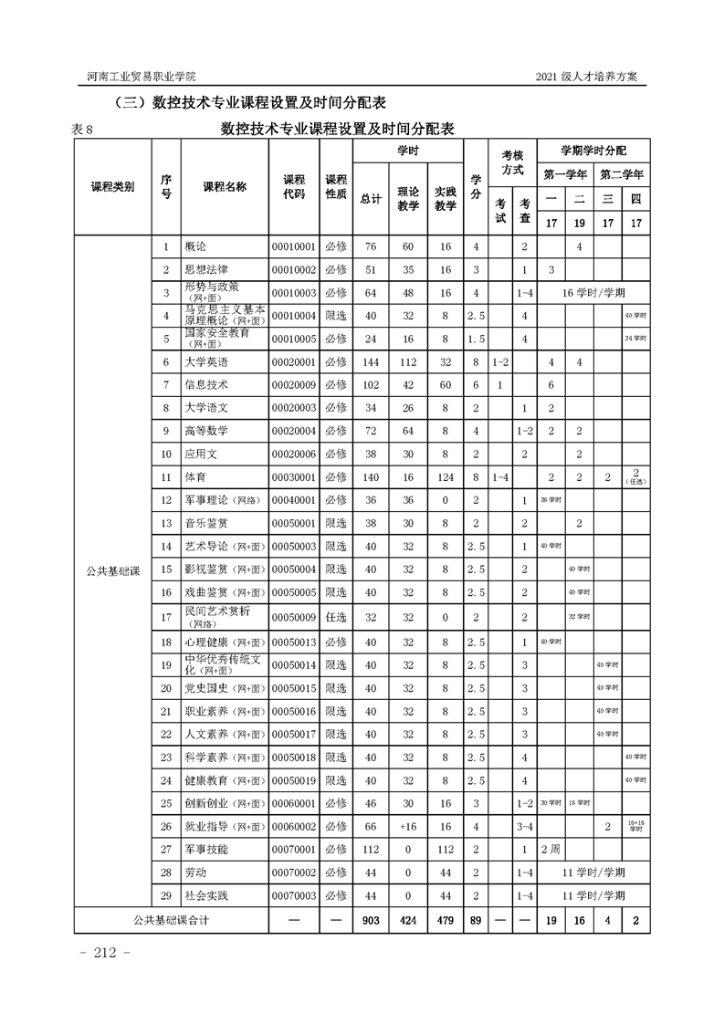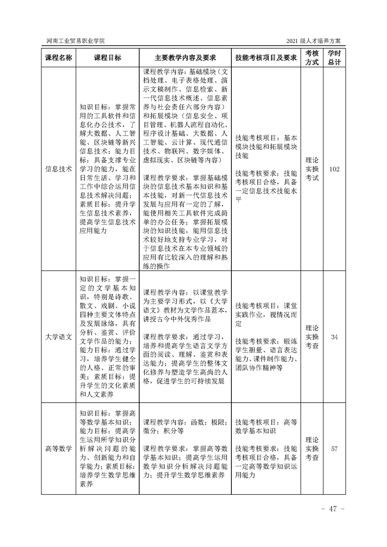 2.河南工業(yè)貿(mào)易職業(yè)學(xué)院2021級(jí)機(jī)電工程學(xué)院人才培養(yǎng)方案
