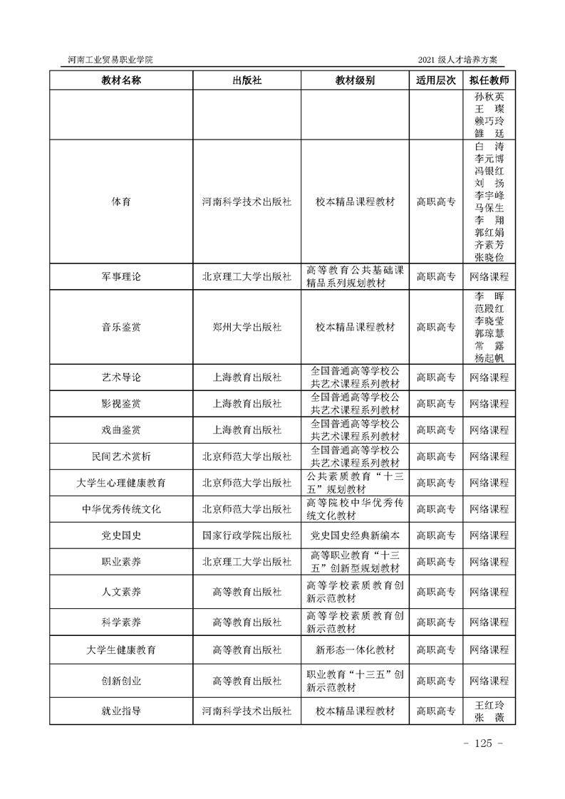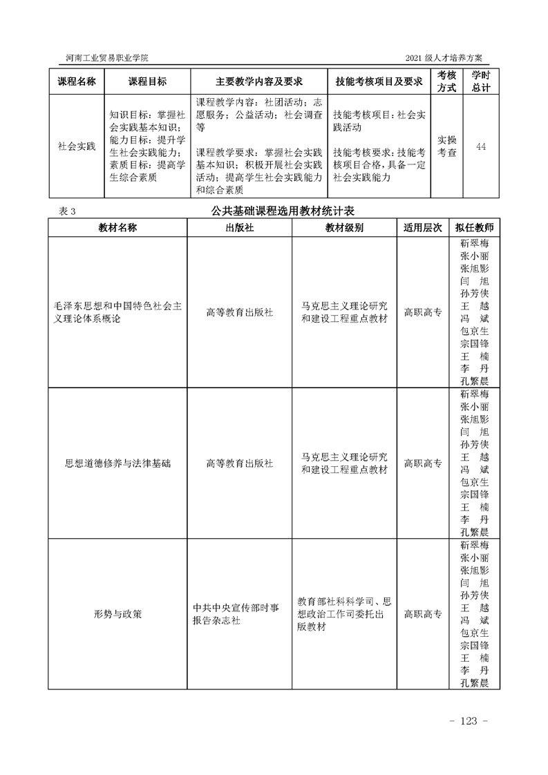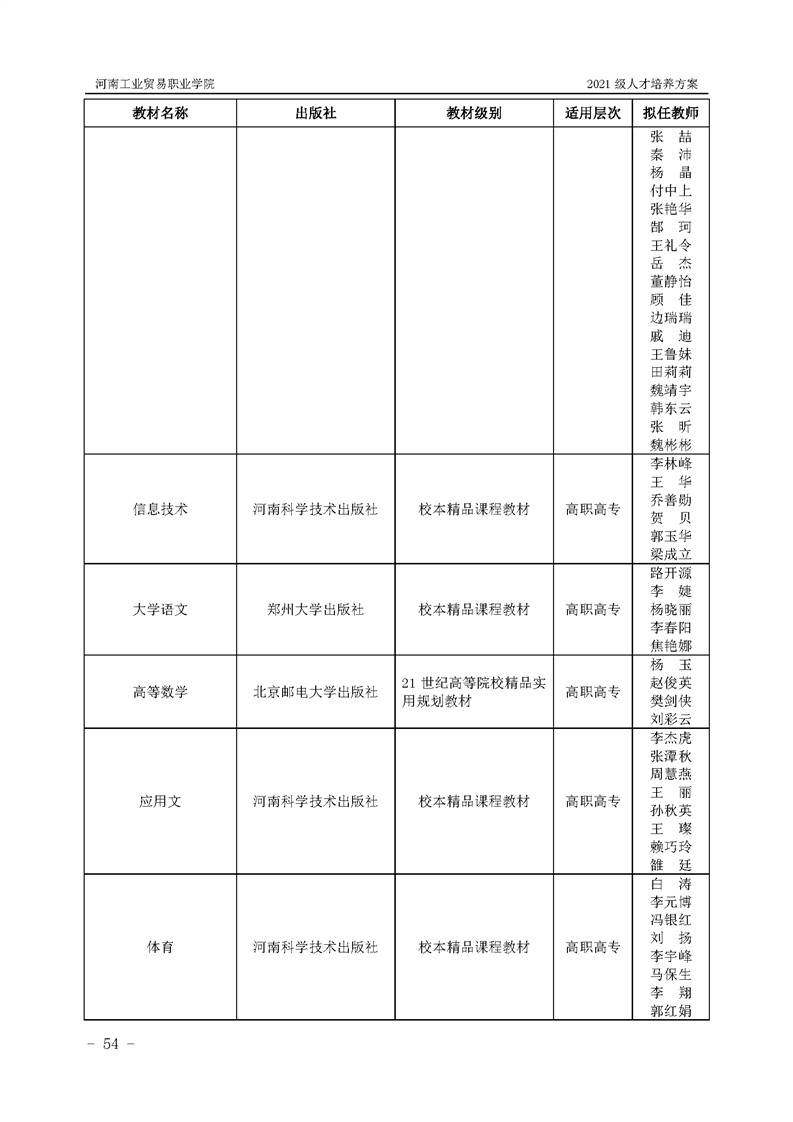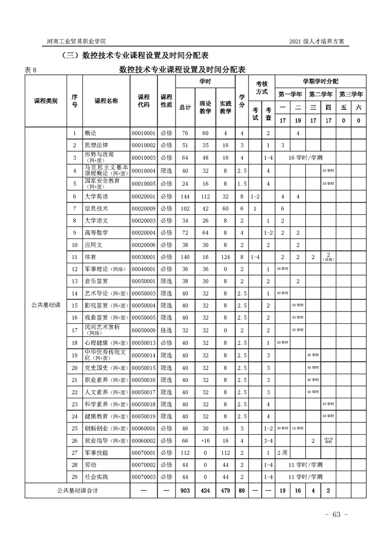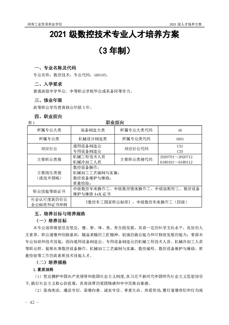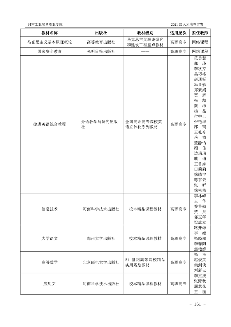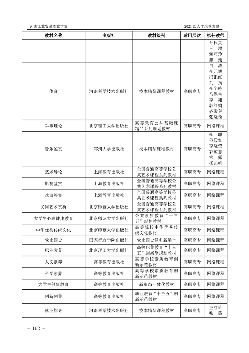 2.河南工業(yè)貿(mào)易職業(yè)學(xué)院2021級(jí)機(jī)電工程學(xué)院人才培養(yǎng)方案