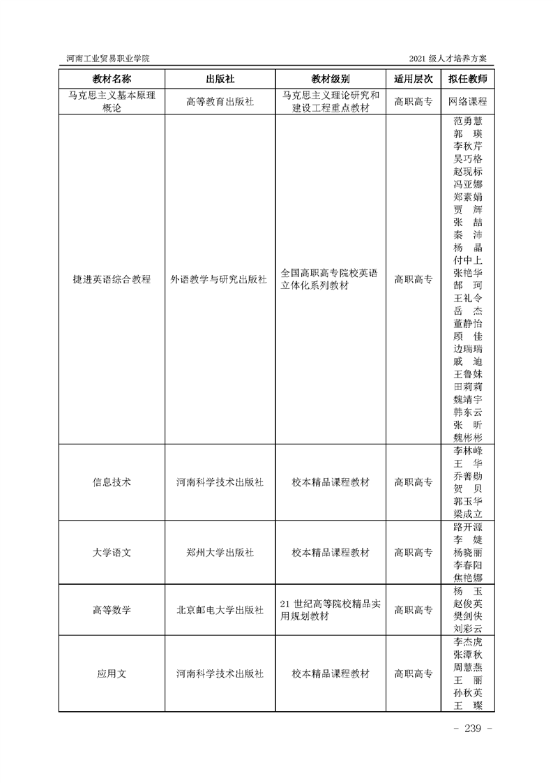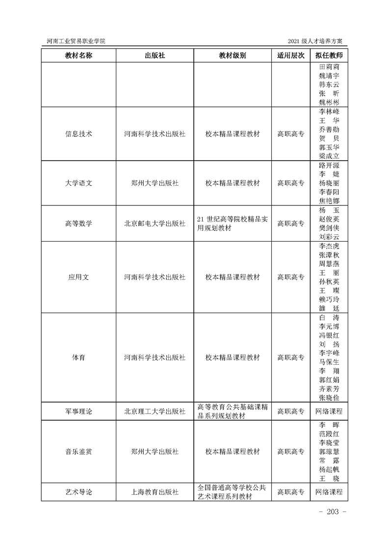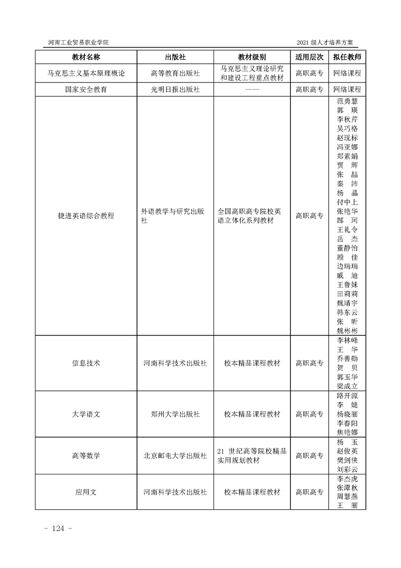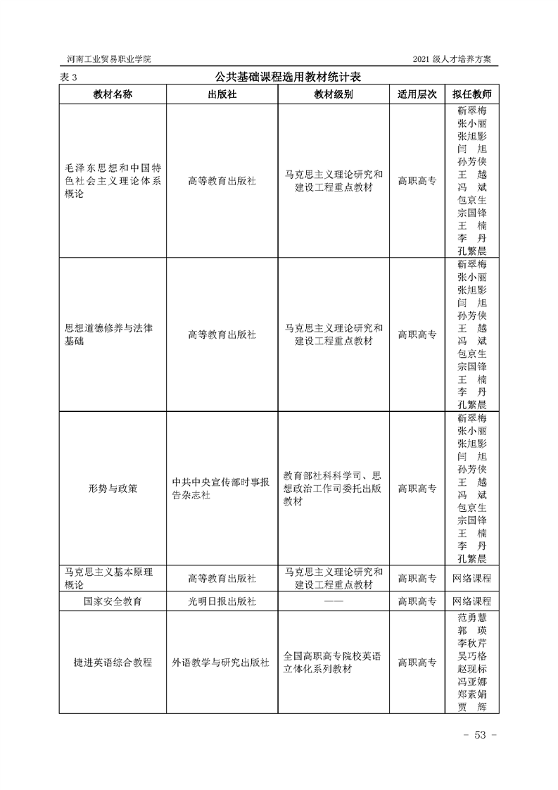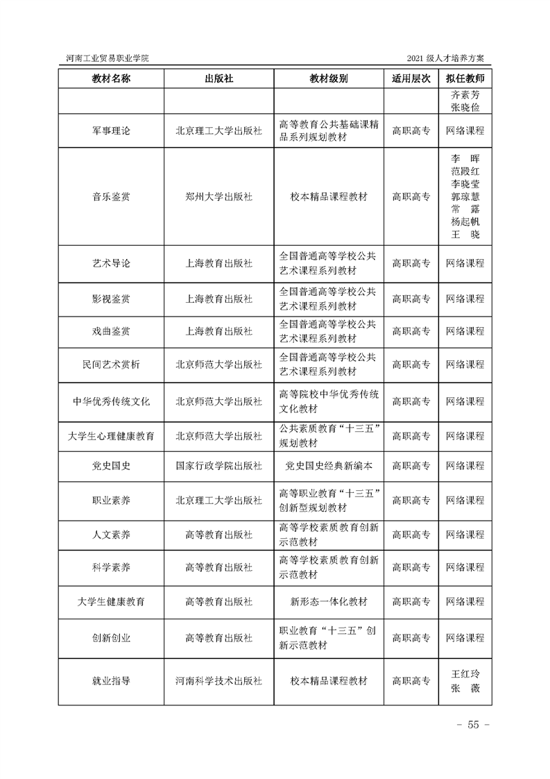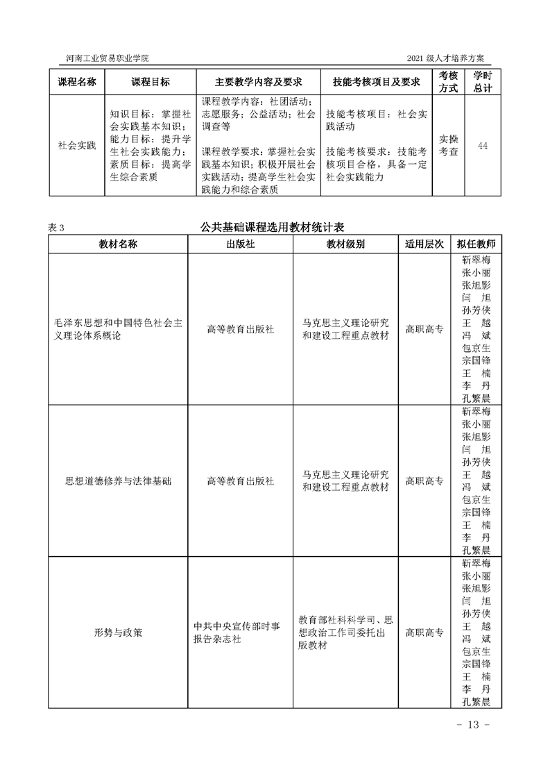 2.河南工業(yè)貿(mào)易職業(yè)學(xué)院2021級(jí)機(jī)電工程學(xué)院人才培養(yǎng)方案