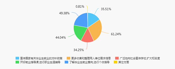 畢業(yè)生認為就業(yè)指導工作中應著重加強收集和整理社會上有關人才需求的信息,以及了解畢業(yè)生就業(yè)意向進行個體指導、開好就業(yè)指導課進行職業(yè)生涯輔導。