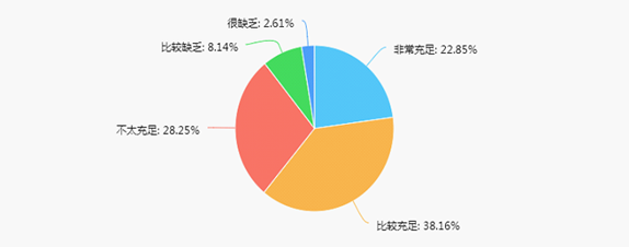 22.85%的畢業(yè)生認為在校期間所學專業(yè)的實踐環(huán)節(jié)非常充足,38.16%的畢業(yè)生認為比較充足,28.25%的畢業(yè)生認為不太充足,8.14%的畢業(yè)生認為比較缺乏,2.61%的畢業(yè)生認為很缺乏。