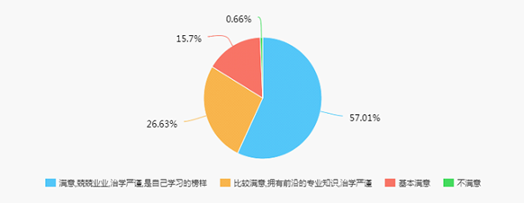 57.01%畢業(yè)生對學院師資水平表示滿意,認為學院師資隊伍兢兢業(yè)業(yè)、治學嚴謹,是自己學習的榜樣,較16年上升7個百分點。