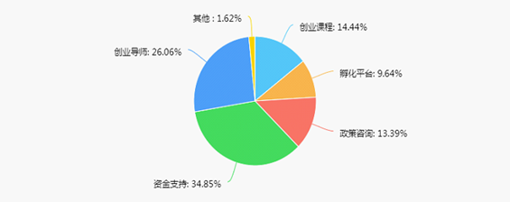 ??34.85%的畢業(yè)生希望學校能給予創(chuàng)業(yè)資金方面的支持,26.06%的學生渴望擁有創(chuàng)業(yè)導師的指導和幫助,14.44%的學生認為創(chuàng)業(yè)課程能為其創(chuàng)業(yè)提供更有效的指導。