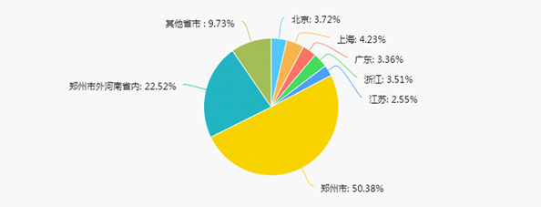 2017年畢業(yè)生在鄭州市工作的占到了50.38%,較2016年上升了1個百分點。在京廣滬江浙一帶工作學生比例為17.37%,較16年上升5個百分點。鄭州市外河南省內(nèi)的為22.52%,較16年下降了6個百分點。其它省市9.73%,較16年上升1個百分點。