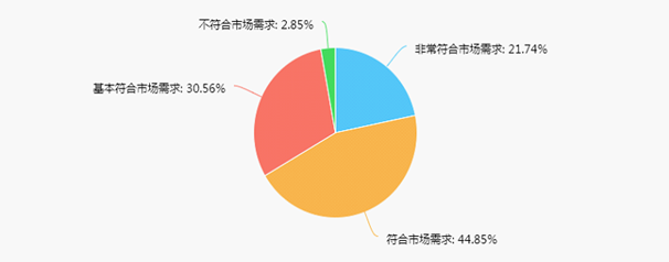 在專業(yè)方面,21.74%畢業(yè)生認為所學專業(yè)非常符合市場需求,44.85%的學生認為符合市場需求,30.56%的學生認為基本符合市場需求,2.85%的學生不符合市場需求。