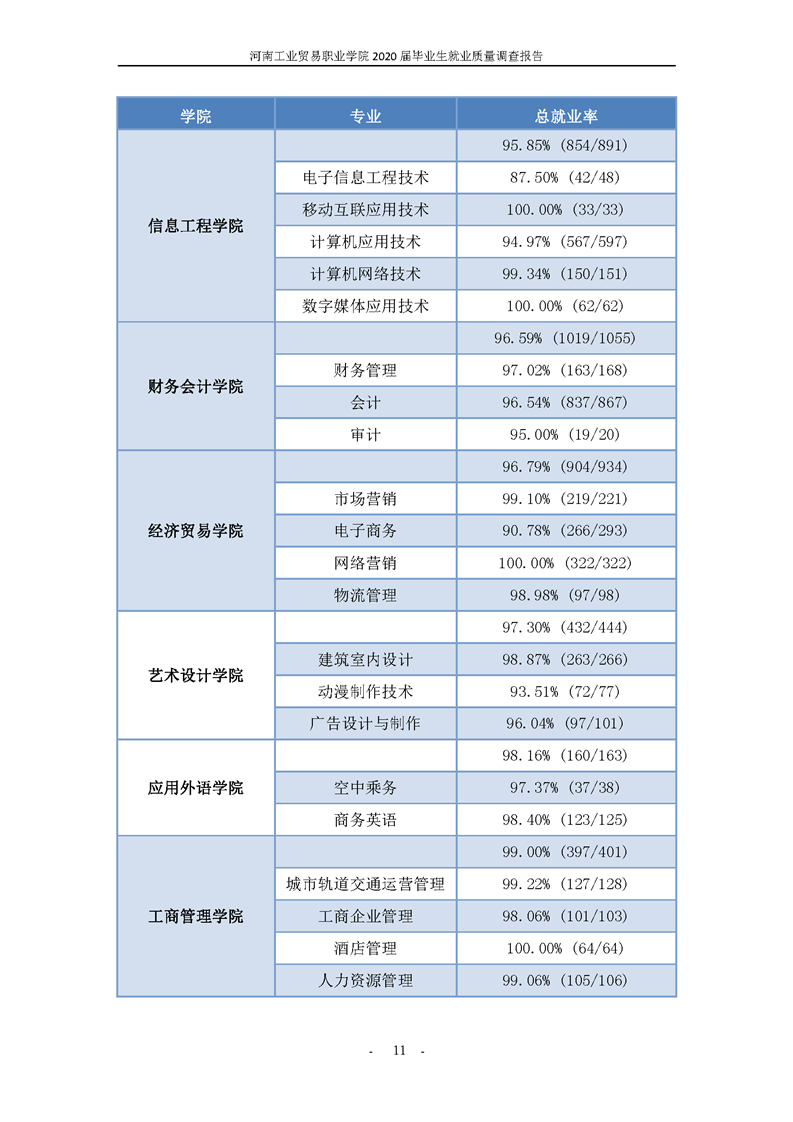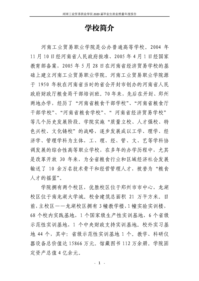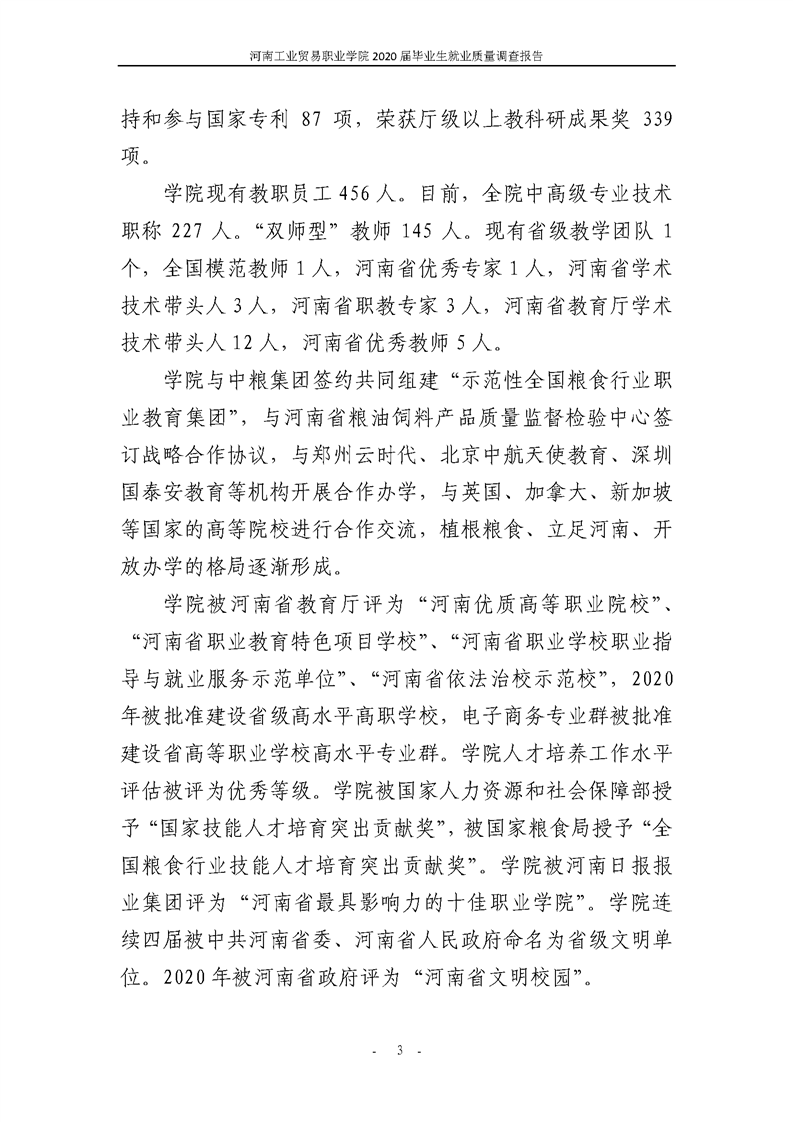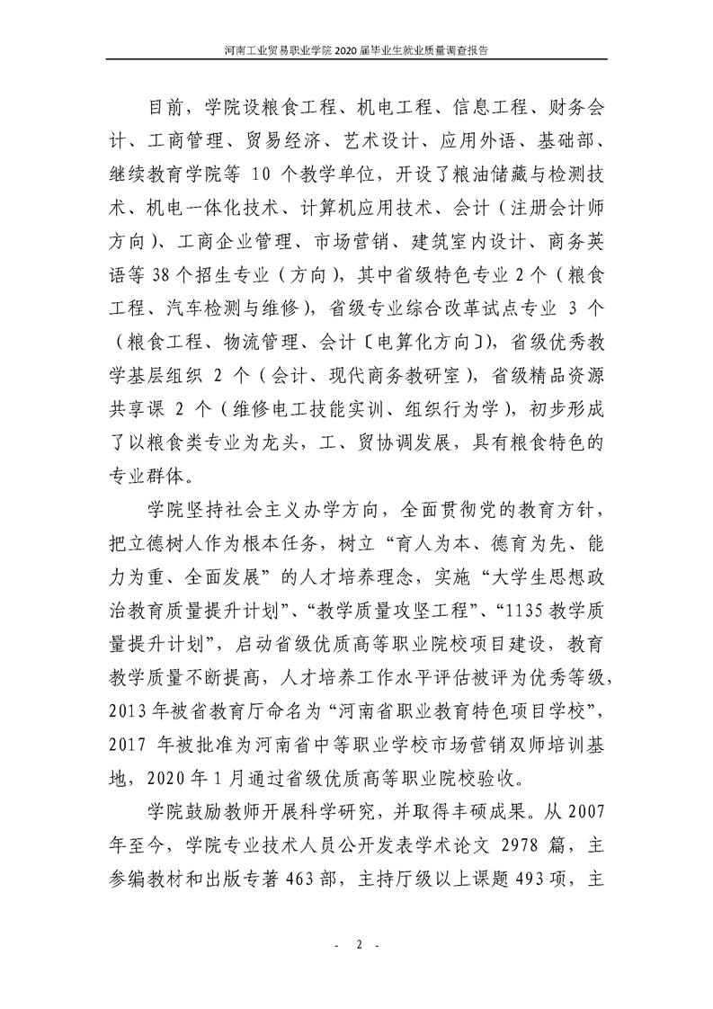 河南工業貿易職業學院2020屆畢業生就業質量年度報告