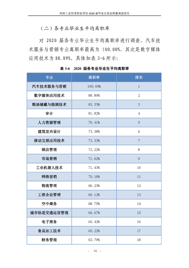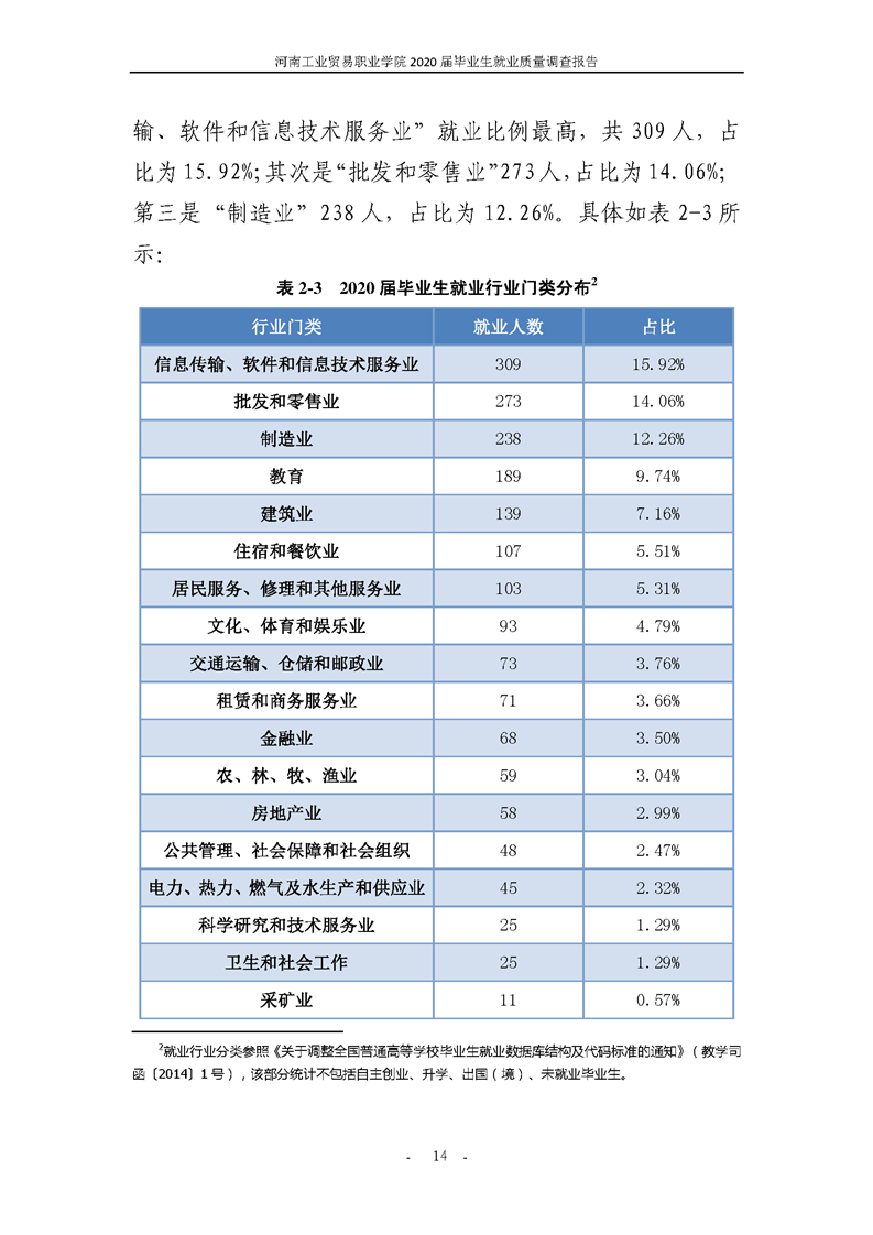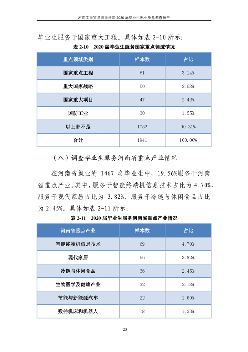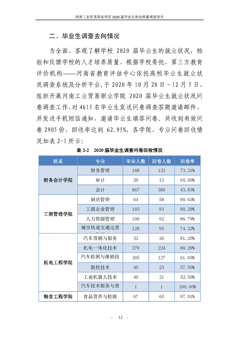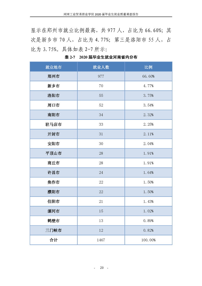 河南工業貿易職業學院2020屆畢業生就業質量年度報告