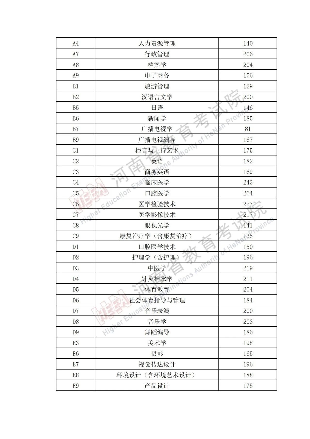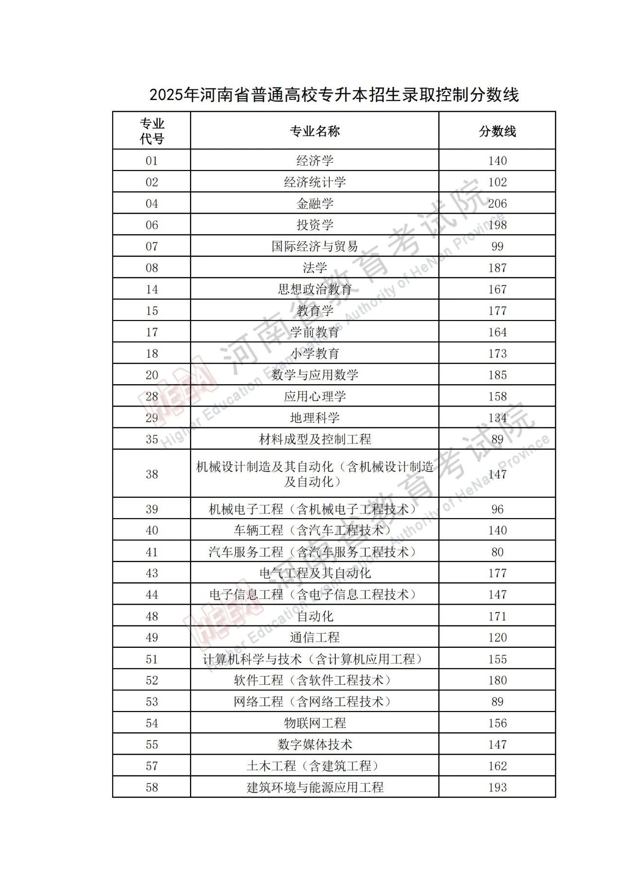 【專升本】2025年河南省普通高校專升本招生錄取控制分數線