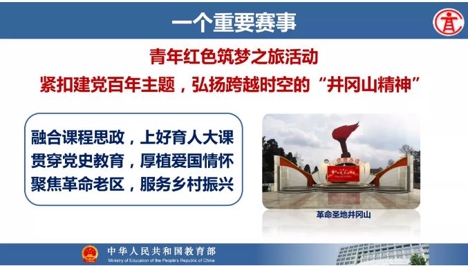2021年4月1日,“2021年全國高教處長會”在陜西西安召開,教育部高教司司長吳巖在《夯實(shí)教學(xué)“新基建” 托起培養(yǎng)高質(zhì)量》主題報(bào)告中指出要辦好第七屆中國國際“互聯(lián)網(wǎng)+”大學(xué)生創(chuàng)新創(chuàng)業(yè)大賽,凸顯大賽更國際、更全面、更創(chuàng)新、更中國、更教育的“五更”辦賽目標(biāo)。以“我敢闖,我會創(chuàng)”為大賽主題,聚焦“五育”并舉的創(chuàng)新創(chuàng)業(yè)教育實(shí)踐,完善線上線下相融合的賽事組織形式,辦一場全球最大規(guī)模雙創(chuàng)盛會。關(guān)于青年紅色筑夢之旅活動(dòng),要緊扣建黨百年主題,弘揚(yáng)跨越時(shí)空的“井岡山精神”。