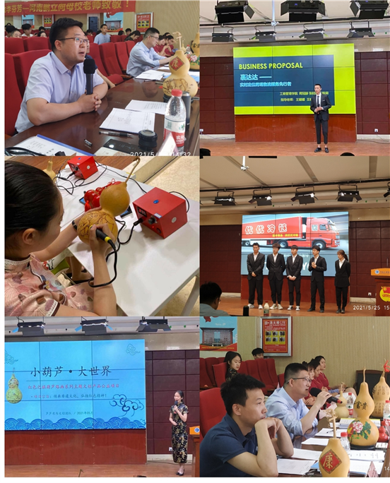 大賽歷時三個小時,賽場競爭激烈,各團隊各顯神通,毫不退讓。最終一等獎由“裹達達 —實時定位跨境物流服務先行者”、“蘆蘆有為”葫蘆烙畫系列主題文創產品