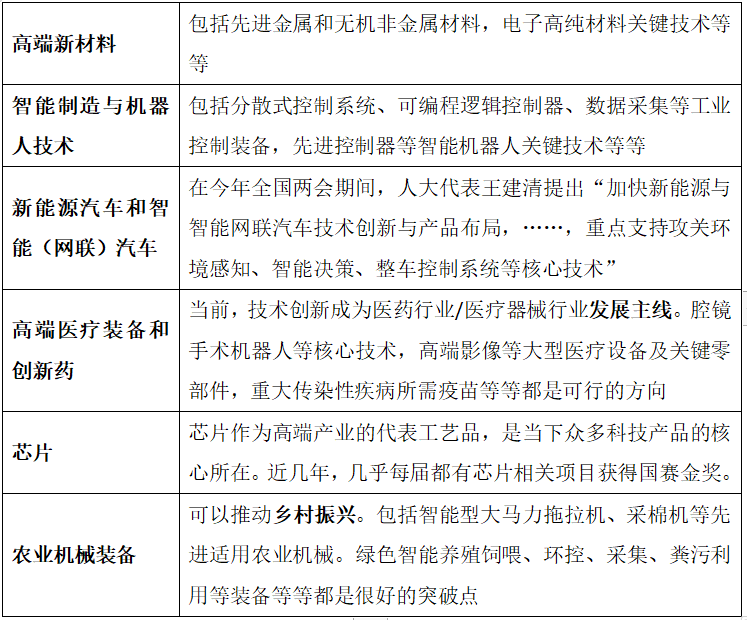 綜上,基于市場需求原則、政策性原則、落地性原則和競爭性原則。以下是我們給出的參考項目方向(它們都深受國家重視,且發展前景廣闊):