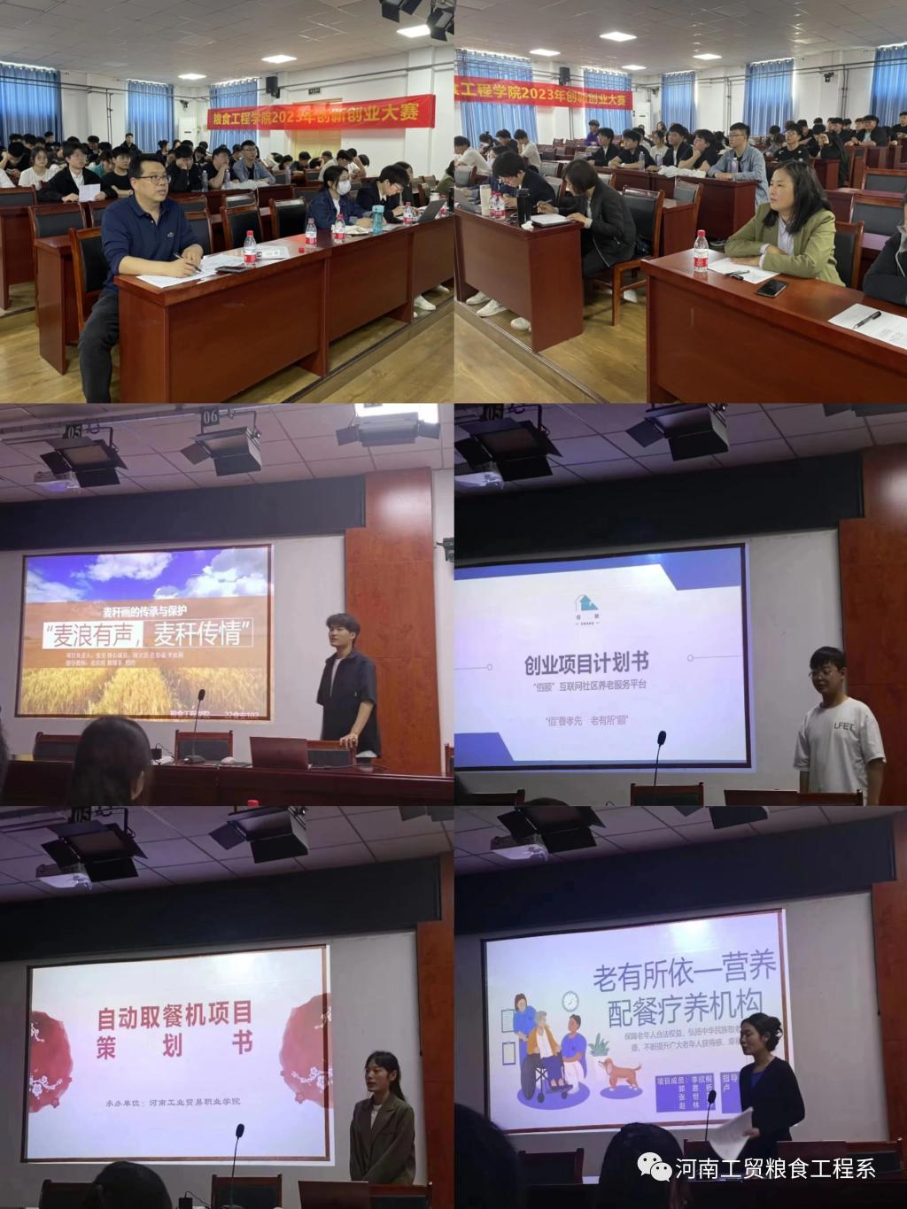 為貫徹國(guó)家和我省關(guān)于推進(jìn)大學(xué)生創(chuàng)新創(chuàng)業(yè)工作的有關(guān)文件精神,落實(shí)我校《關(guān)于舉辦第九屆中國(guó)國(guó)際“互聯(lián)網(wǎng)+”大學(xué)生創(chuàng)新創(chuàng)業(yè)大賽校賽選拔賽的通知》(豫工貿(mào)【2023】46號(hào)),普及大學(xué)生創(chuàng)新創(chuàng)業(yè)觀念,進(jìn)一步引導(dǎo)大學(xué)生了解創(chuàng)新創(chuàng)業(yè)知識(shí),培養(yǎng)創(chuàng)新創(chuàng)業(yè)意識(shí),提高創(chuàng)新創(chuàng)業(yè)能力,鼓勵(lì)學(xué)生成長(zhǎng)為具有創(chuàng)新意識(shí)、善于捕捉市場(chǎng)機(jī)遇、勇于開(kāi)拓的創(chuàng)業(yè)者,糧食工程學(xué)院組織師生于2023年5月8日在行政樓招聘會(huì)議室舉辦了“糧食工程學(xué)院2023年互聯(lián)網(wǎng)+大學(xué)生創(chuàng)新創(chuàng)業(yè)大賽”。