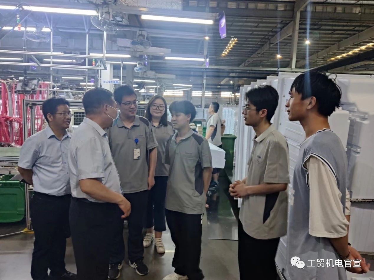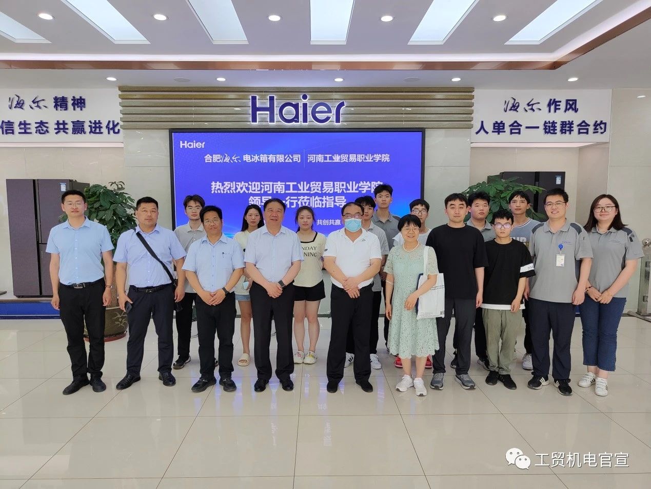 5月19日,河南工業(yè)貿(mào)易職業(yè)學院黨委書記劉合行,教學管理處處長李強、經(jīng)濟貿(mào)易學院院長張素勤、學院辦公室副主任陳建濤一行4人,到合肥海爾電冰箱有限公司親切看望我校機電類專業(yè)實習學生,并就校企合作工作進行深入溝通交流。合肥海爾電冰箱副總經(jīng)理趙智斌、生產(chǎn)部長王元、創(chuàng)客中心人力資源經(jīng)理儲貽成等陪同參觀座談。