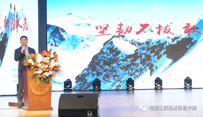 接著,中物流河南有限公司軍民融合辦公室主任張學東結合個人經歷,就“學業、就業、創業”主題進行分享,他寄語同學們既要腳踏實、還要仰望星空,找到實現自我價值的平臺和目標,并為之奮斗拼搏。