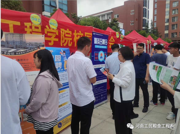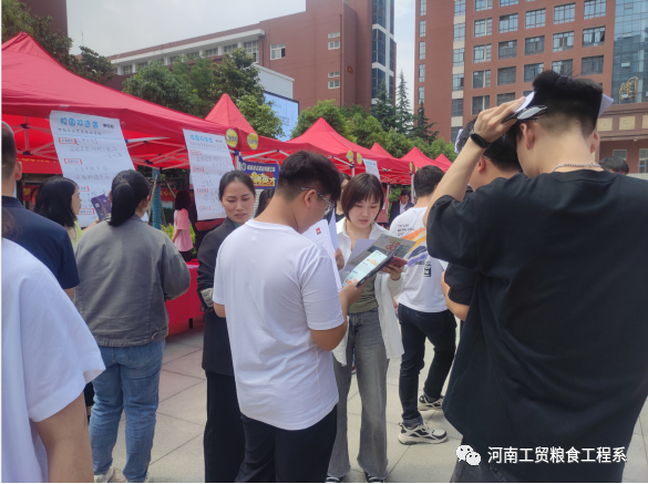 為深入學習貫徹黨的二十大精神,全面落實教育部、河南省教育廳《關于做好2023屆全國普通高校畢業生就業創業工作的通知》及校黨委積極推進畢業生就業創業工作部署,搭建畢業生與用人單位便捷、精準高效的信息溝通與雙向選擇平臺,助力用人單位選聘人才,促進畢業生高質量落實就業,提高服務學生水平,在學校黨委的正確領導下,在就業處的大力支持下,5月30日下午,糧食工程學院在紅旗廣場舉辦了“2023年糧食工程學院校園雙選會”。