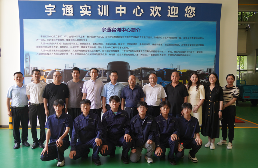 李國鋒指出,不斷拓寬“校企合作、產(chǎn)教融合”廣度和深度是職教改革的趨勢,宇通集團(tuán)作為客車行業(yè)的龍頭企業(yè),在實習(xí)實訓(xùn)方面有得天獨厚的條件。以企業(yè)崗位需求為先導(dǎo),促進(jìn)產(chǎn)教融合校企“雙元”育人;多措并舉打造“雙師型”教師隊伍;建設(shè)多元辦學(xué)格局,完善技術(shù)技能人才保障政策,整合資源,共育符合時代要求的產(chǎn)業(yè)工人,服務(wù)區(qū)域經(jīng)濟(jì)發(fā)展,是我們職業(yè)教育發(fā)展意義所在。鄭州宇通集團(tuán)有限公司在師資實踐培訓(xùn)方面經(jīng)驗豐富、實力雄厚,希望今后在教師培養(yǎng)、學(xué)生培訓(xùn)、專業(yè)建設(shè)以及實習(xí)就業(yè)等方面,校企雙方能開展深度合作。