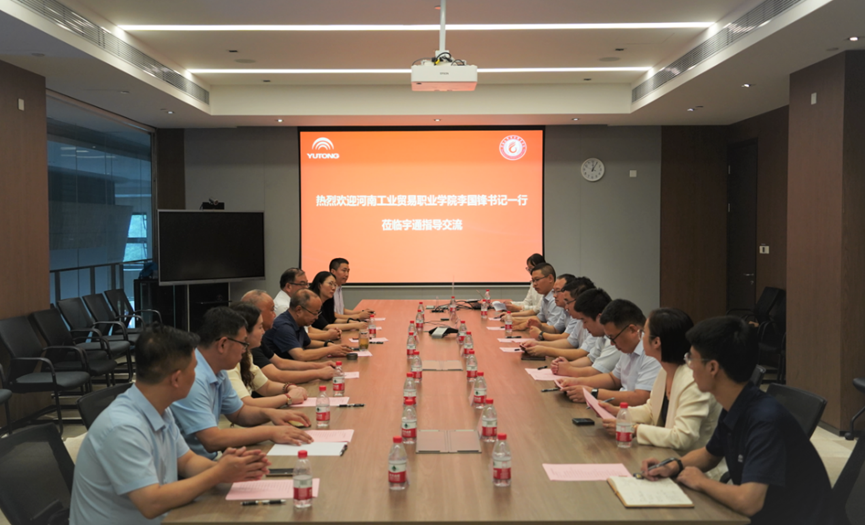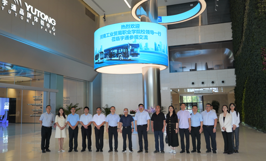 金秋九月,丹桂飄香,金菊盛開。為了推進(jìn)主題教育走深走實,促進(jìn)校企合作,深化產(chǎn)教融合,9月18日上午,河南工業(yè)貿(mào)易職業(yè)學(xué)院黨委書記李國鋒、副校長李強(qiáng)以及教務(wù)處、校企合作與國際交流處、就業(yè)處、黨政辦公室、汽車工程學(xué)院等部門負(fù)責(zé)人一行8人,深入鄭州宇通集團(tuán)有限公司考察調(diào)研,慰問正在企業(yè)進(jìn)行跟崗實習(xí)的汽車工程學(xué)院指導(dǎo)老師和學(xué)生代表。鄭州宇通集團(tuán)有限公司技能培訓(xùn)及用工業(yè)務(wù)負(fù)責(zé)人李峰,教育公司總經(jīng)理韓德利、人力資源經(jīng)理郭永利、校企合作經(jīng)理張曉峰等陪同參觀交流。