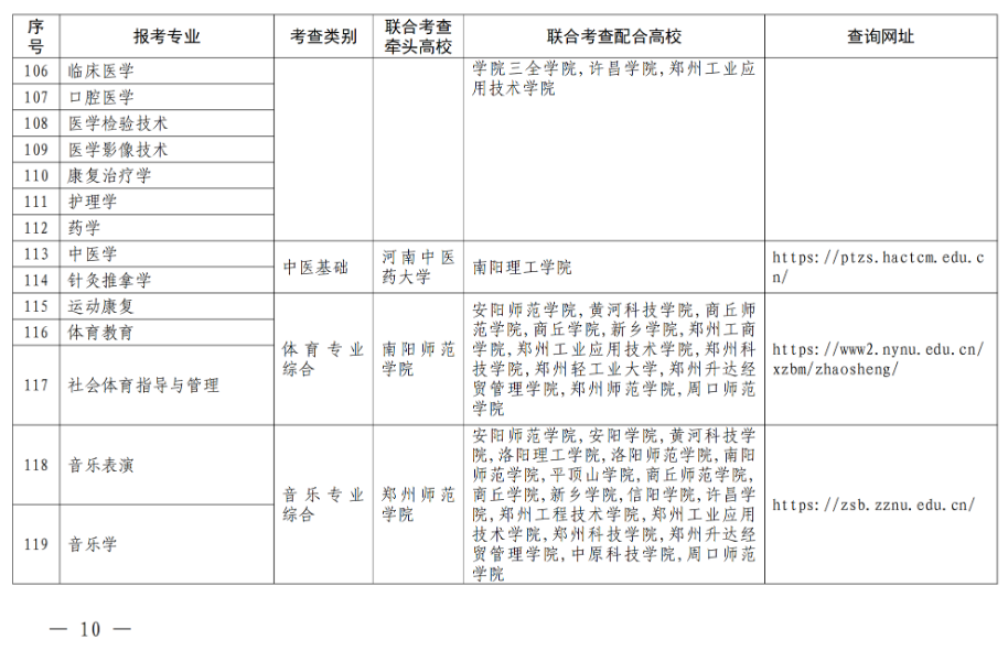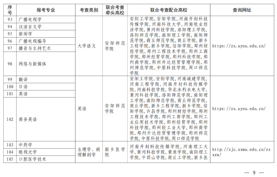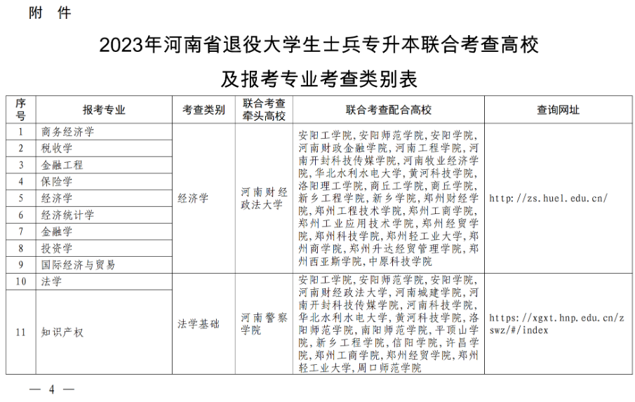 附件:2023年河南省退役大學生士兵專升本聯合考查高校及報考專業考查類別表