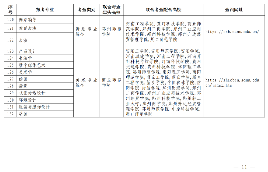 通知明確,各聯合考查組要根據本專業大類培養目標和對考生能力的要求,結合報考情況,合理制定聯合考查方案,明確高校考查時間、考查地點、考查方式、錄取規則、聯系電話、網址等事項。各牽頭高校要于3月6日前將聯合考查方案上傳至“河南省普通高校招生章程核定系統”(網址:http://zszcba.haedu.gov.cn)進行核定,3月20日前向社會公布。考生可登錄附表中的相關網址進行查詢。