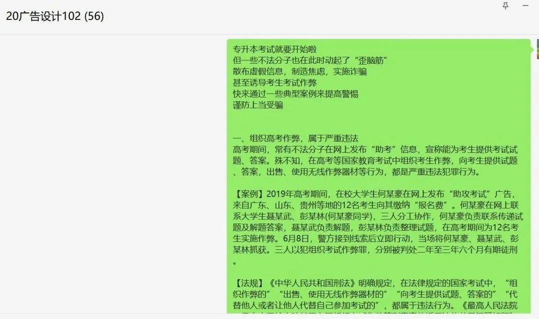 根據(jù)新鄭市召開(kāi)“2023年專(zhuān)升本考試工作推進(jìn)會(huì)”會(huì)議要求。2023年專(zhuān)升本考試即將到來(lái)之際,為進(jìn)一步推動(dòng)考風(fēng)考紀(jì)建設(shè),加強(qiáng)學(xué)生考試誠(chéng)信教育,培育和樹(shù)立良好的考風(fēng),營(yíng)造勤奮向上的學(xué)習(xí)氛圍,培養(yǎng)學(xué)生誠(chéng)實(shí)守信的品德,學(xué)院各班輔導(dǎo)員老師通過(guò)線上線下結(jié)合學(xué)習(xí)的方式開(kāi)展了專(zhuān)升本考試誠(chéng)信教育活動(dòng)??忌鷤兞私饬艘恍┑湫桶咐?,謹(jǐn)防上當(dāng)。輔導(dǎo)員為考生們做了考前動(dòng)員,給同學(xué)們加油鼓勁,引導(dǎo)誠(chéng)信考試教育。