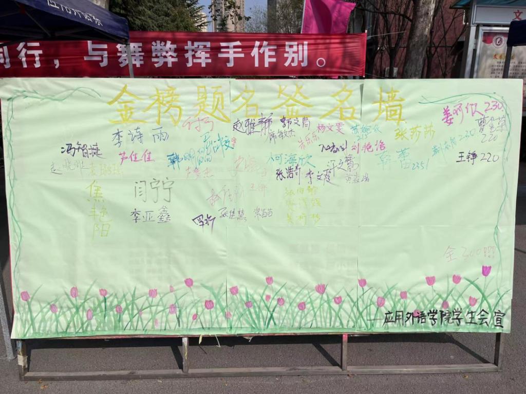 為了鼓舞考生士氣,我院為考生們準(zhǔn)備了“金榜題名”簽名墻,預(yù)祝各位考生金榜題名,旗開得勝!