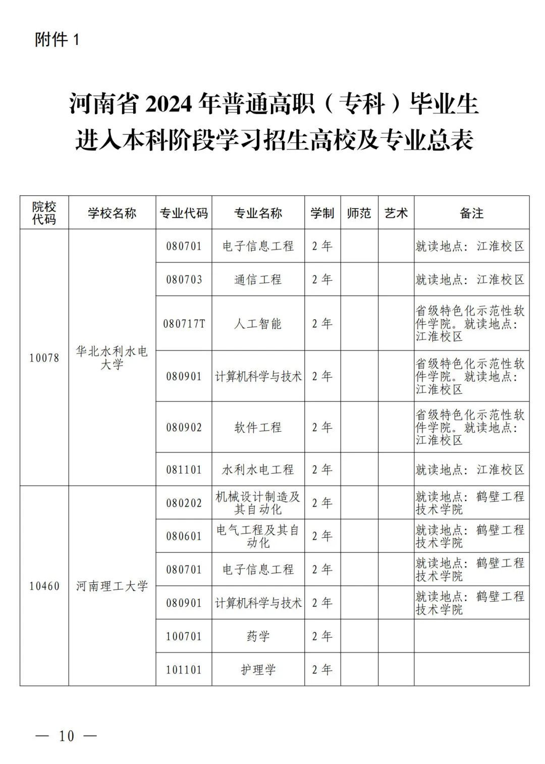 附件:1.河南省2024年普通高職(專科)畢業(yè)生進入本科階段學習招生高校及專業(yè)總表