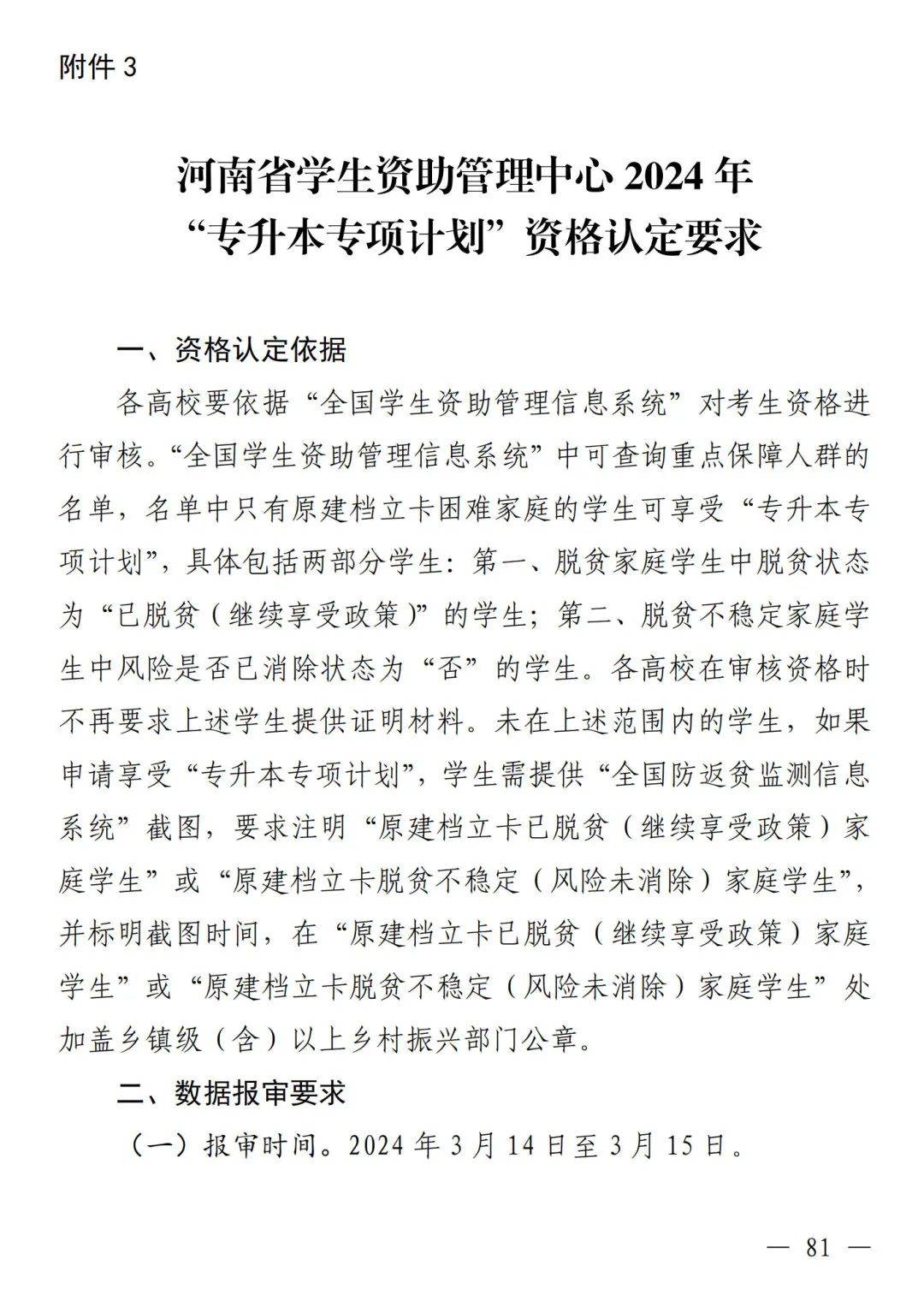 3.河南省學生資助管理中心2024年“專升本專項計劃”資格認定要求