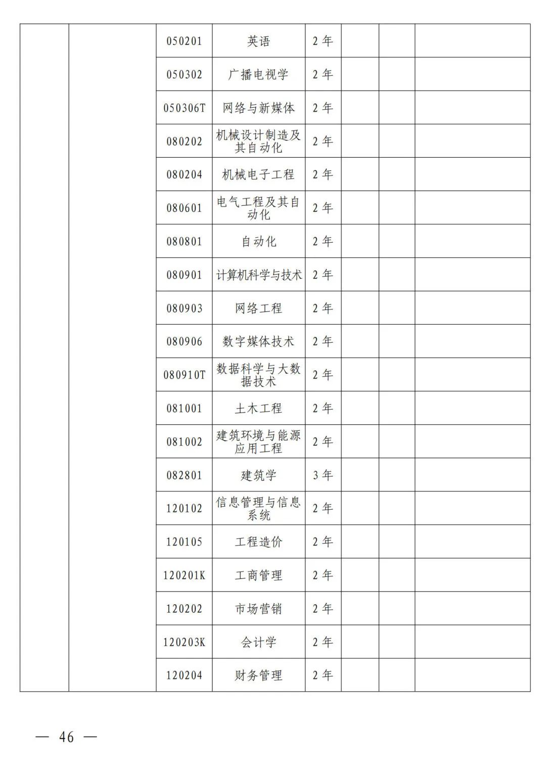 (二)教學管理。各高校要根據(jù)學習年限和生源特點,對照《普通高等學校本科專業(yè)類教學質(zhì)量國家標準》,完善專升本專業(yè)人才培養(yǎng)方案,切實加強學習過程管理,確保與普通本科專業(yè)人才培養(yǎng)堅持同一標準、同等質(zhì)量。專升本招生超過30人的專業(yè),高校要進行單獨編班,科學制定培養(yǎng)方案,認真做好課程銜接教學和人才培養(yǎng);確不具備單獨編班條件的,可編入同一專業(yè)三年級學習。專升本學生在校期間享受本校同一專業(yè)全國高校招生統(tǒng)一考試招收的普通本科生待遇,其學費、住宿費、資助等執(zhí)行同樣的政策標準。