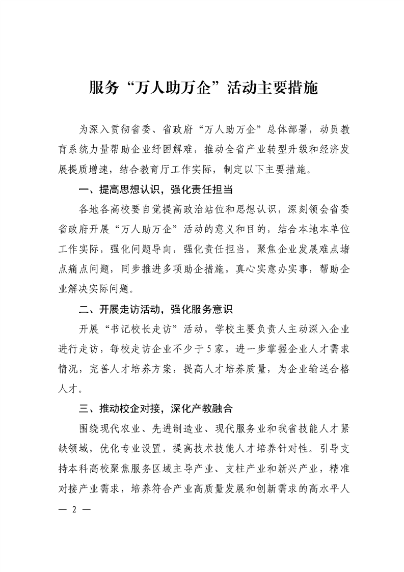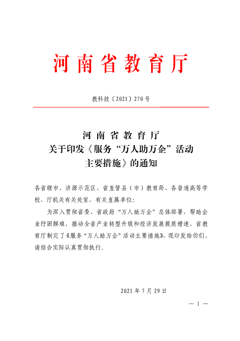 河南省教育廳關于印發《服務“萬人助萬企”活動 主要措施》的通知