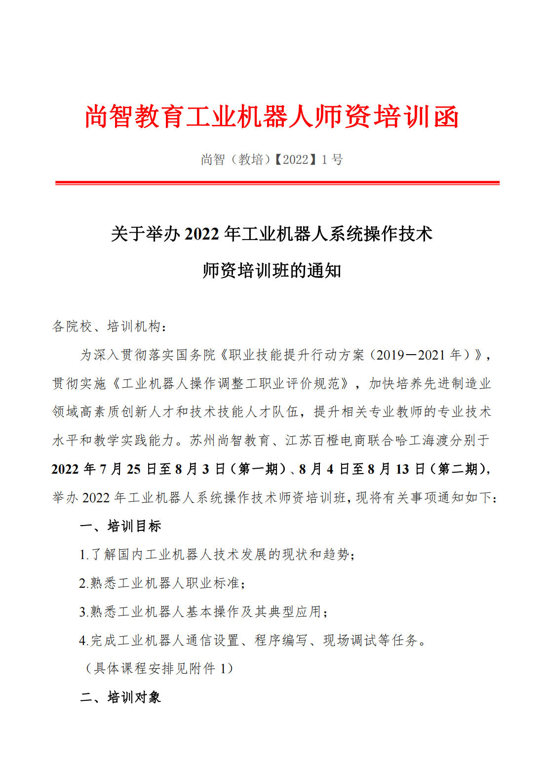 【培訓(xùn)】尚智教育工業(yè)機(jī)器人師資培訓(xùn)函