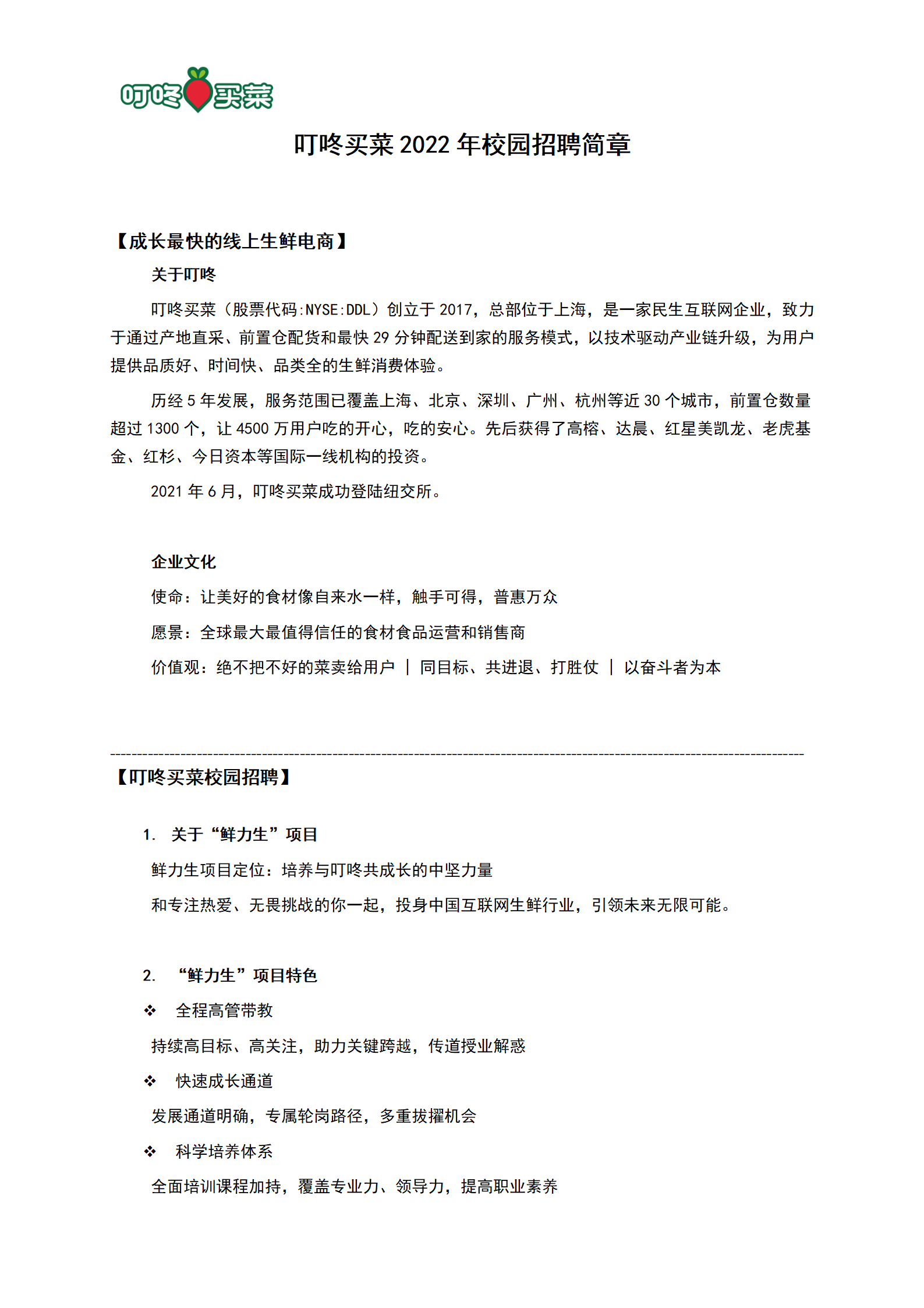 【招聘】 叮咚買(mǎi)菜 誠(chéng)聘!