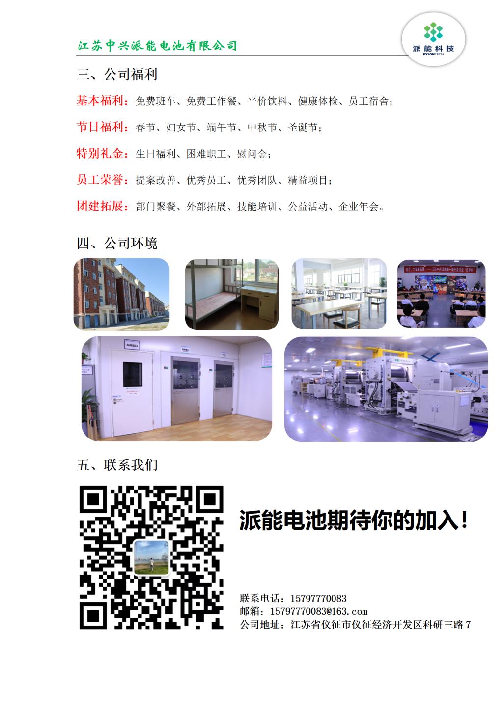 【招聘】 江蘇中興派能電池有限公司 誠聘!