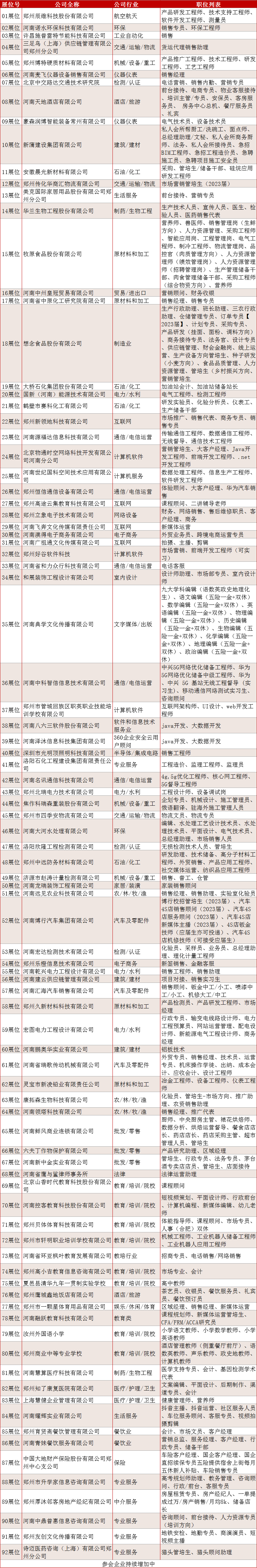 截至目前,已有牧原食品股份有限公司、想念食品股份有限公司、大橋石化集團股份有限公司、河南中州皇冠貿易有限公司、新蒲建設集團有限公司、安徽晨光新材料有限公司等90余家國企、上市公司和知名企業報名參會,提供崗位4700余個。