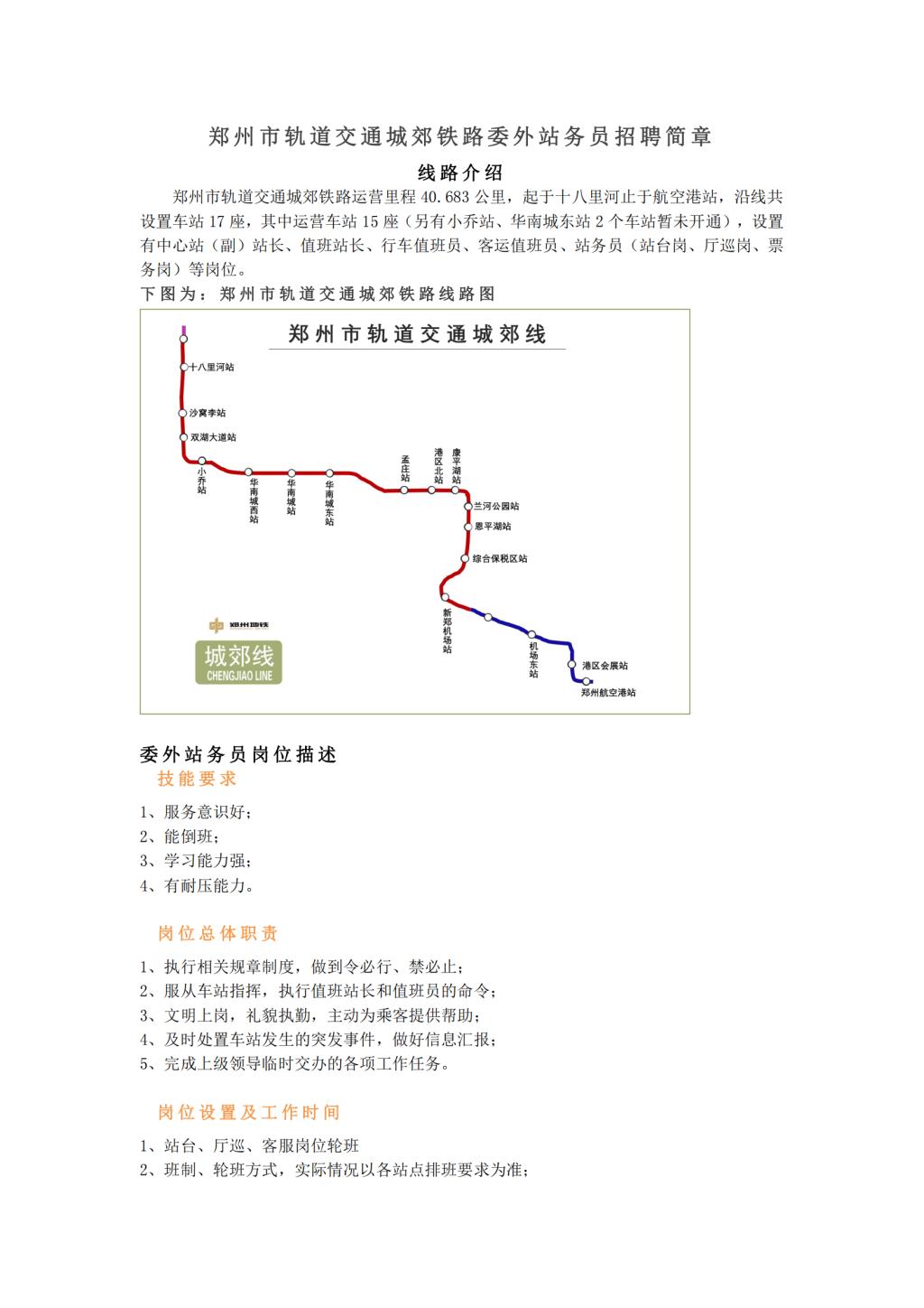 【招聘】鄭州市軌道交通城郊鐵路委外站務員 誠聘!